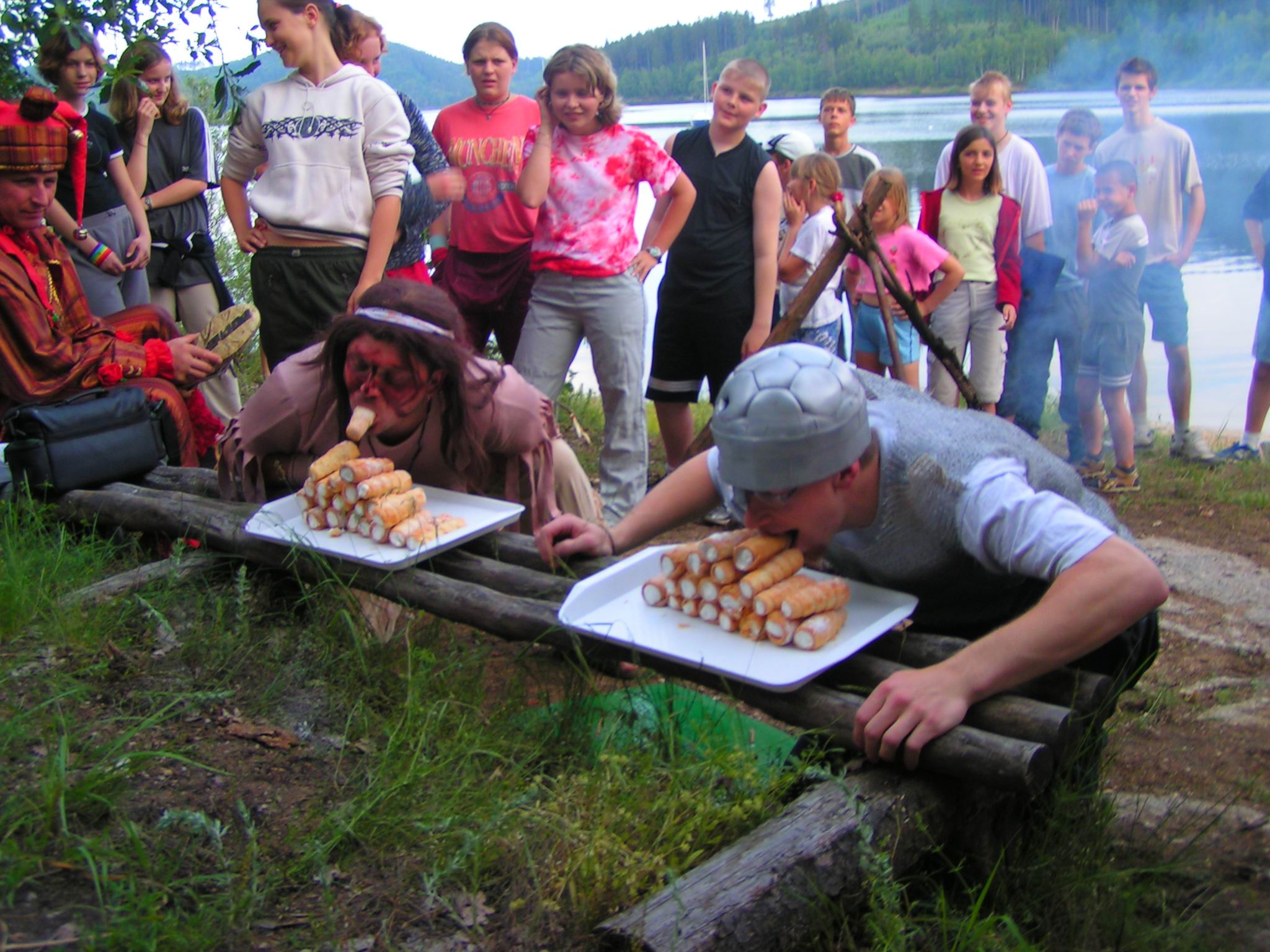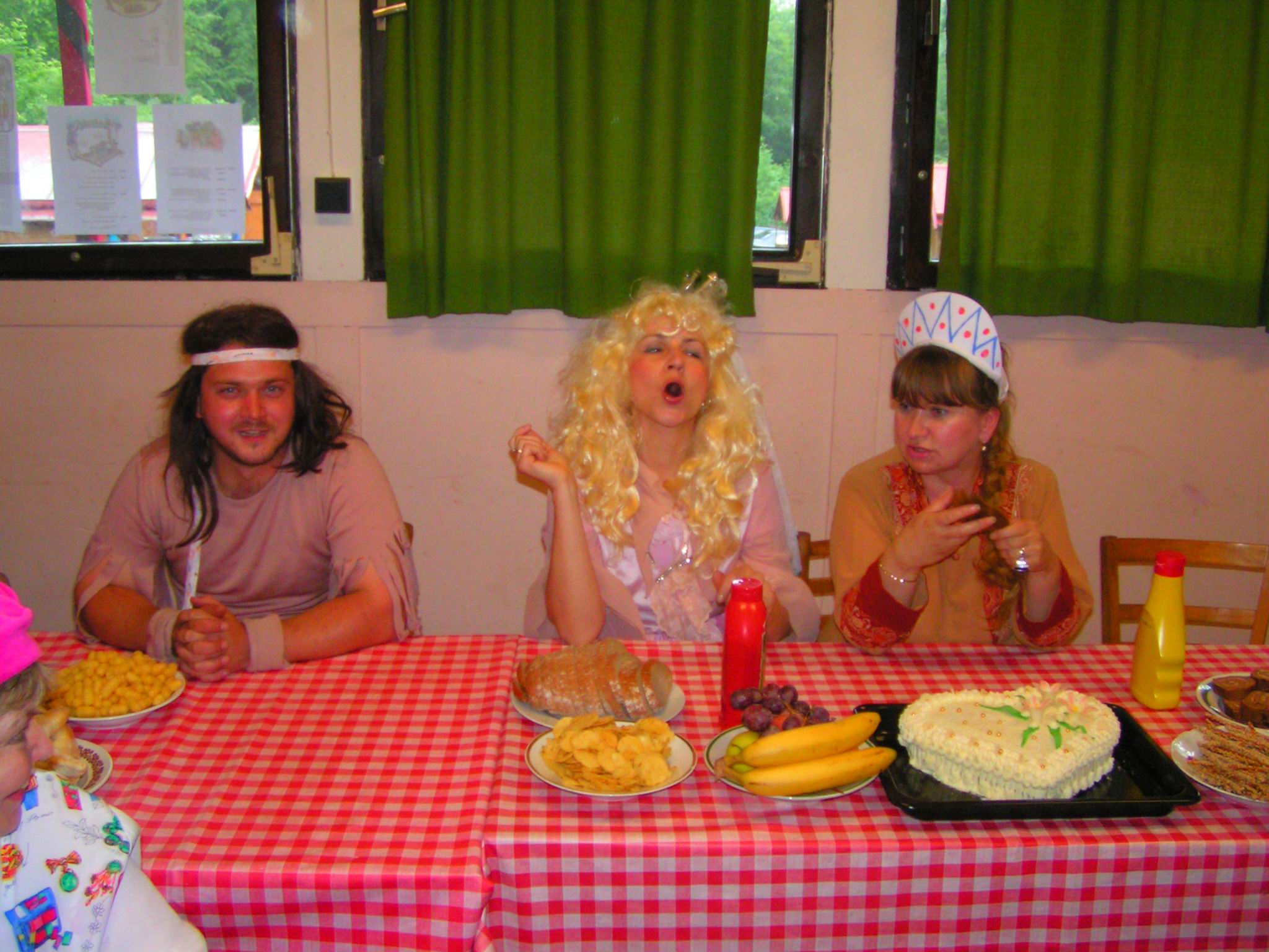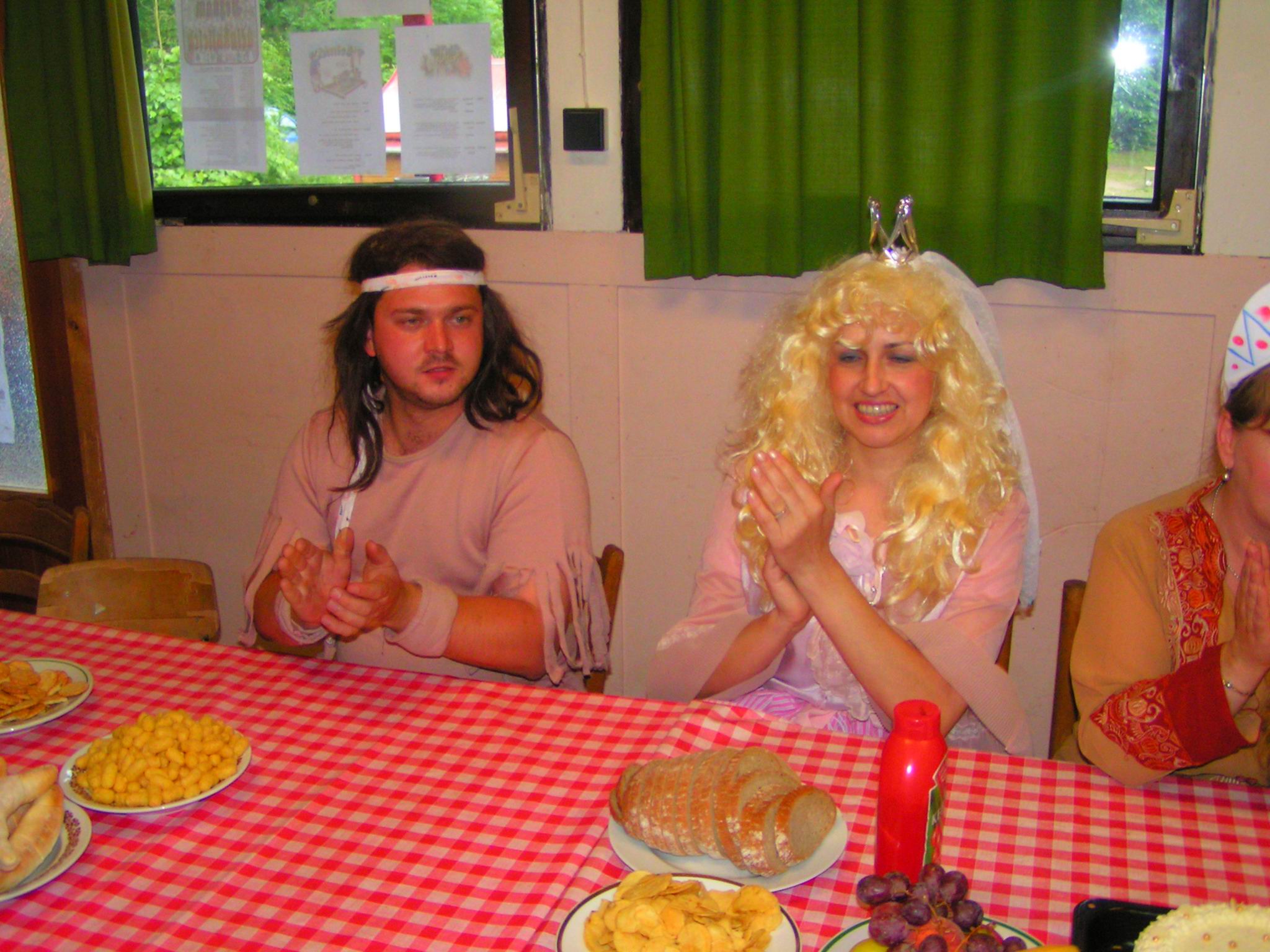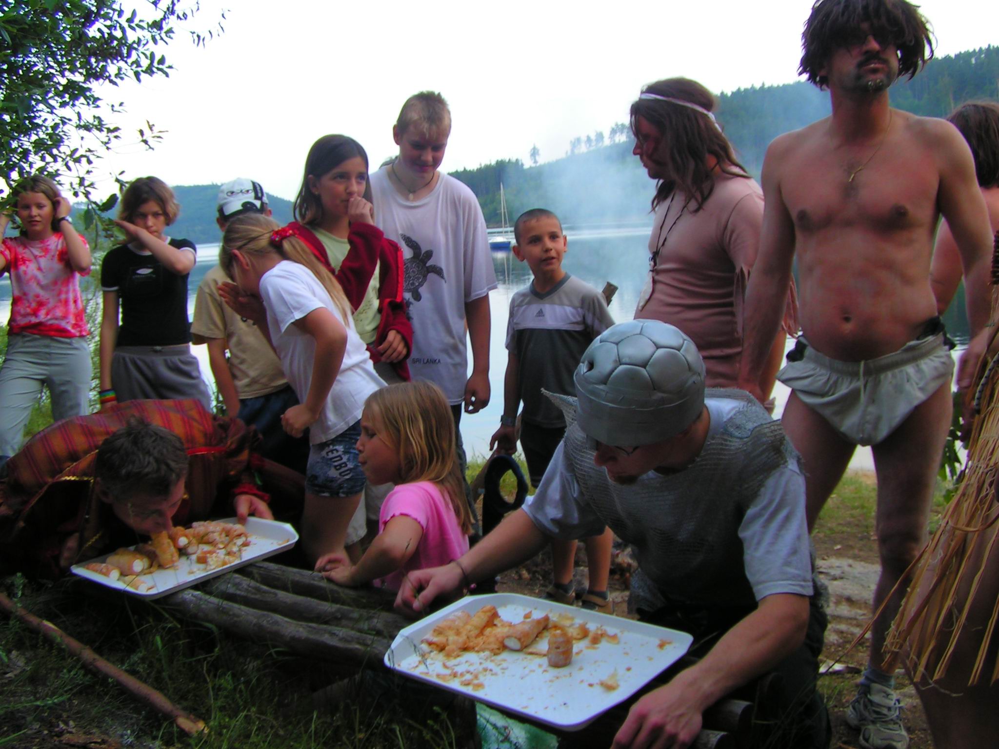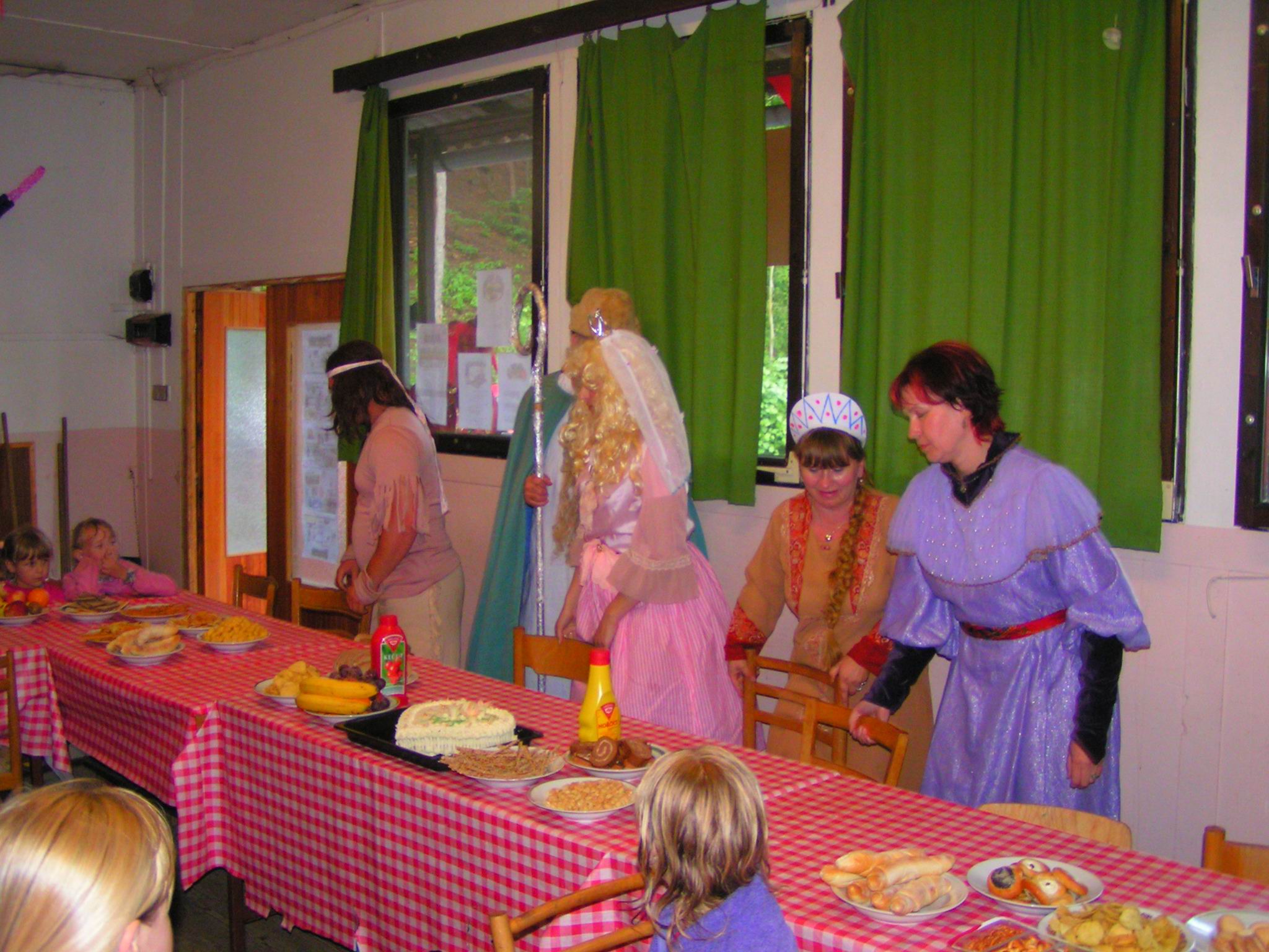 buřty, chléb, hořčice buchty (bábovka), kakao gulášová polévka, játra s rýží uzené vepřové kýty, chléb, hořčice rohlíky se sýrem, čaj polévka (vývar), vepřové, knedlík a zelí svatební hostina kuře a jiné maso na grilu s chlebem, brambůrky, ovoce a zelenina, salát, sušenky, dort a proudy šampaňského chléb s paštikou, čaj špagety s omáčkou doma |