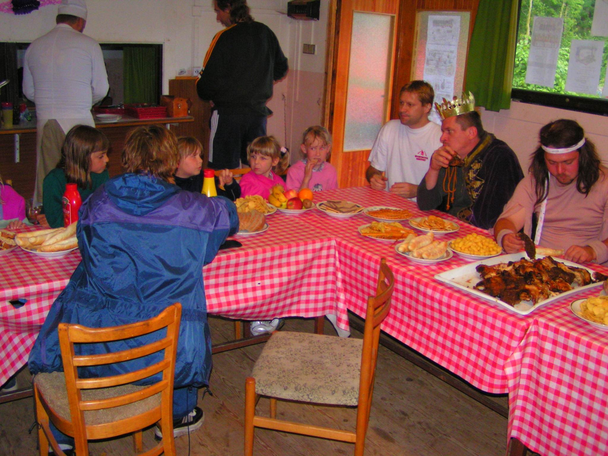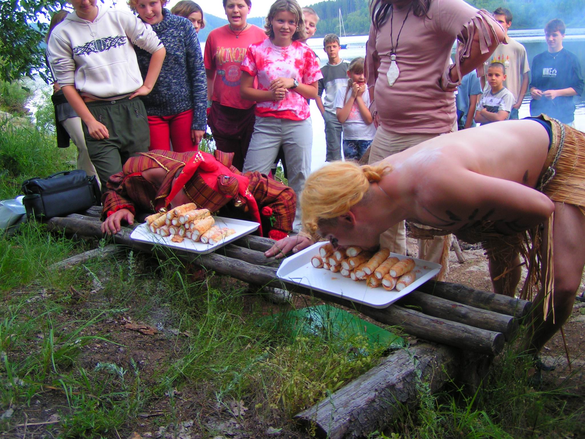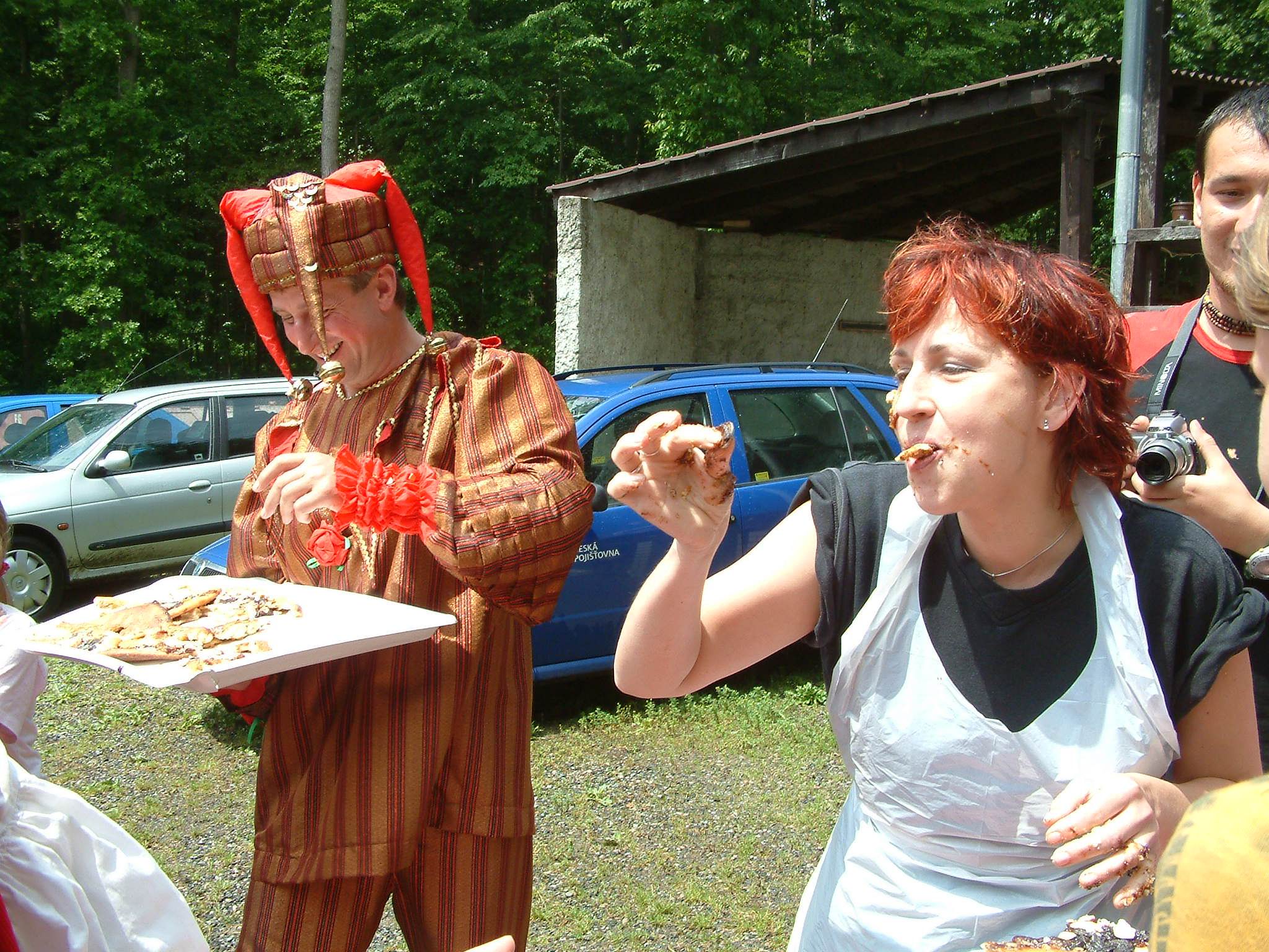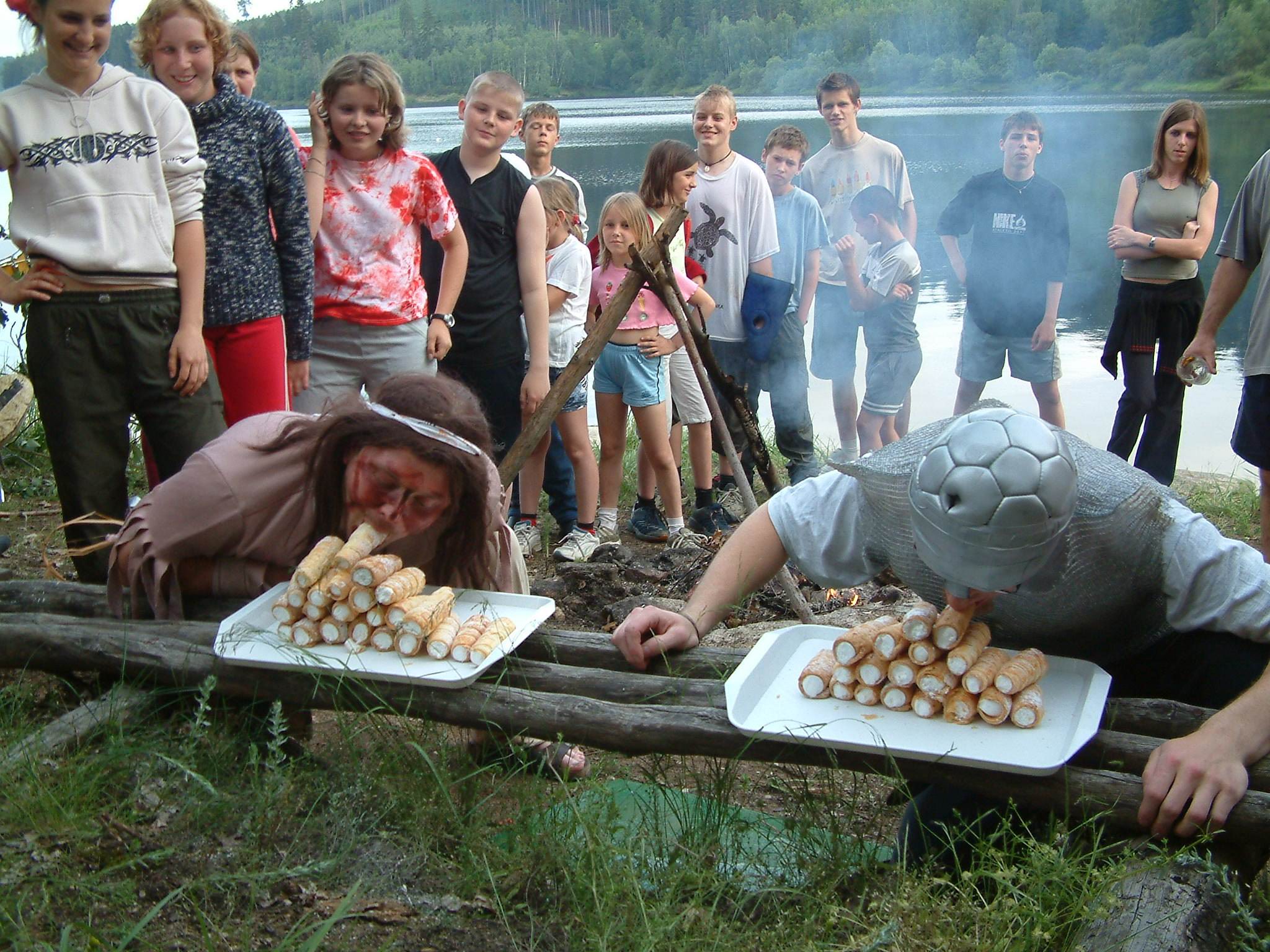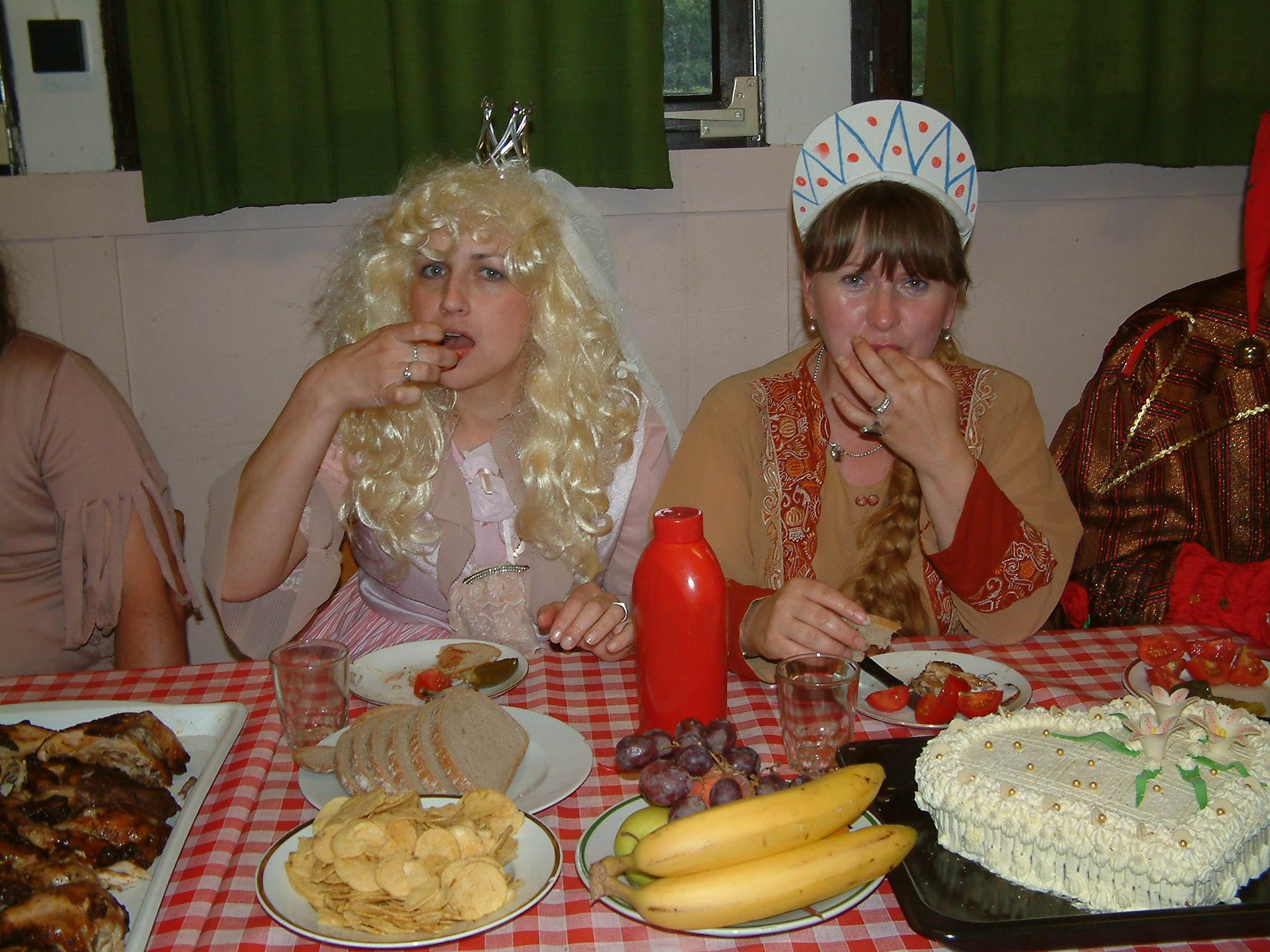 buřty, chléb, hořčice buchty (bábovka), kakao gulášová polévka, játra s rýží uzené vepřové kýty, chléb, hořčice rohlíky se sýrem, čaj polévka (vývar), vepřové, knedlík a zelí svatební hostina kuře a jiné maso na grilu s chlebem, brambůrky, ovoce a zelenina, salát, sušenky, dort a proudy šampaňského chléb s paštikou, čaj špagety s omáčkou doma |