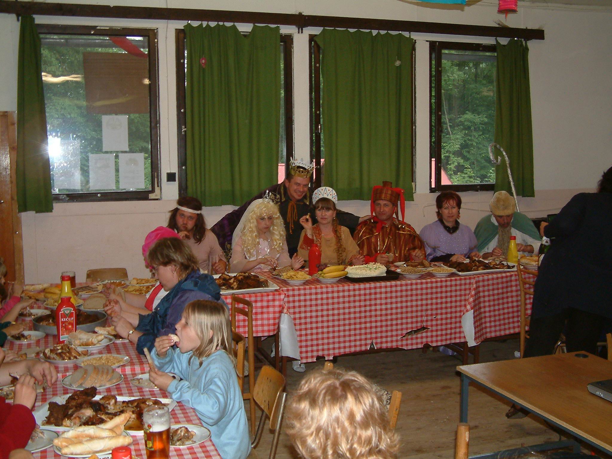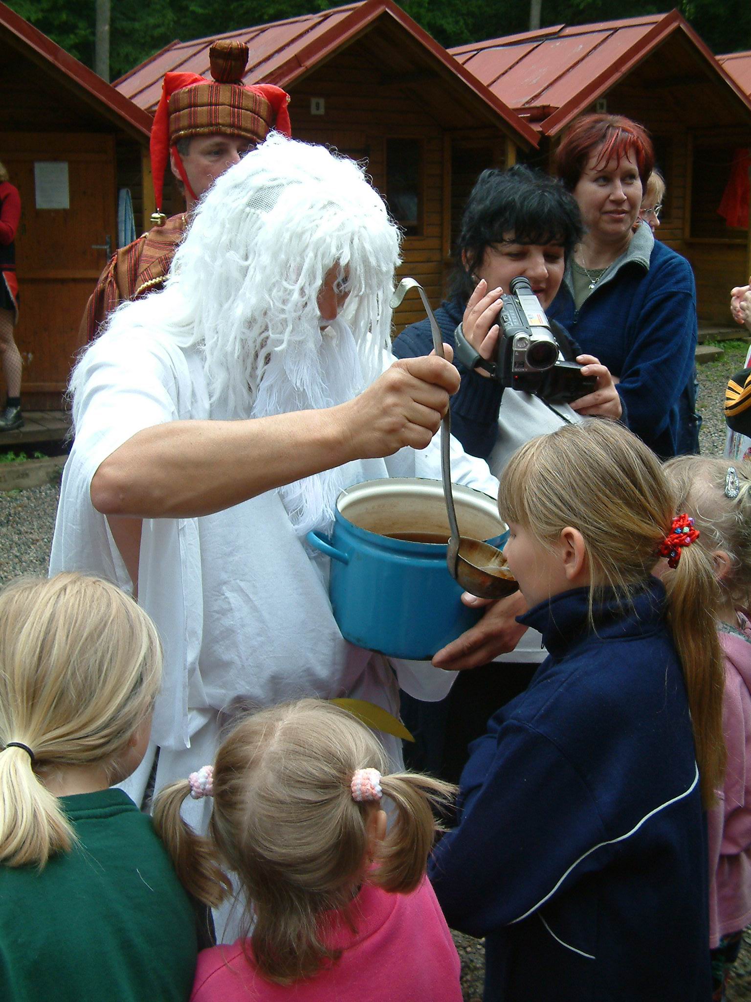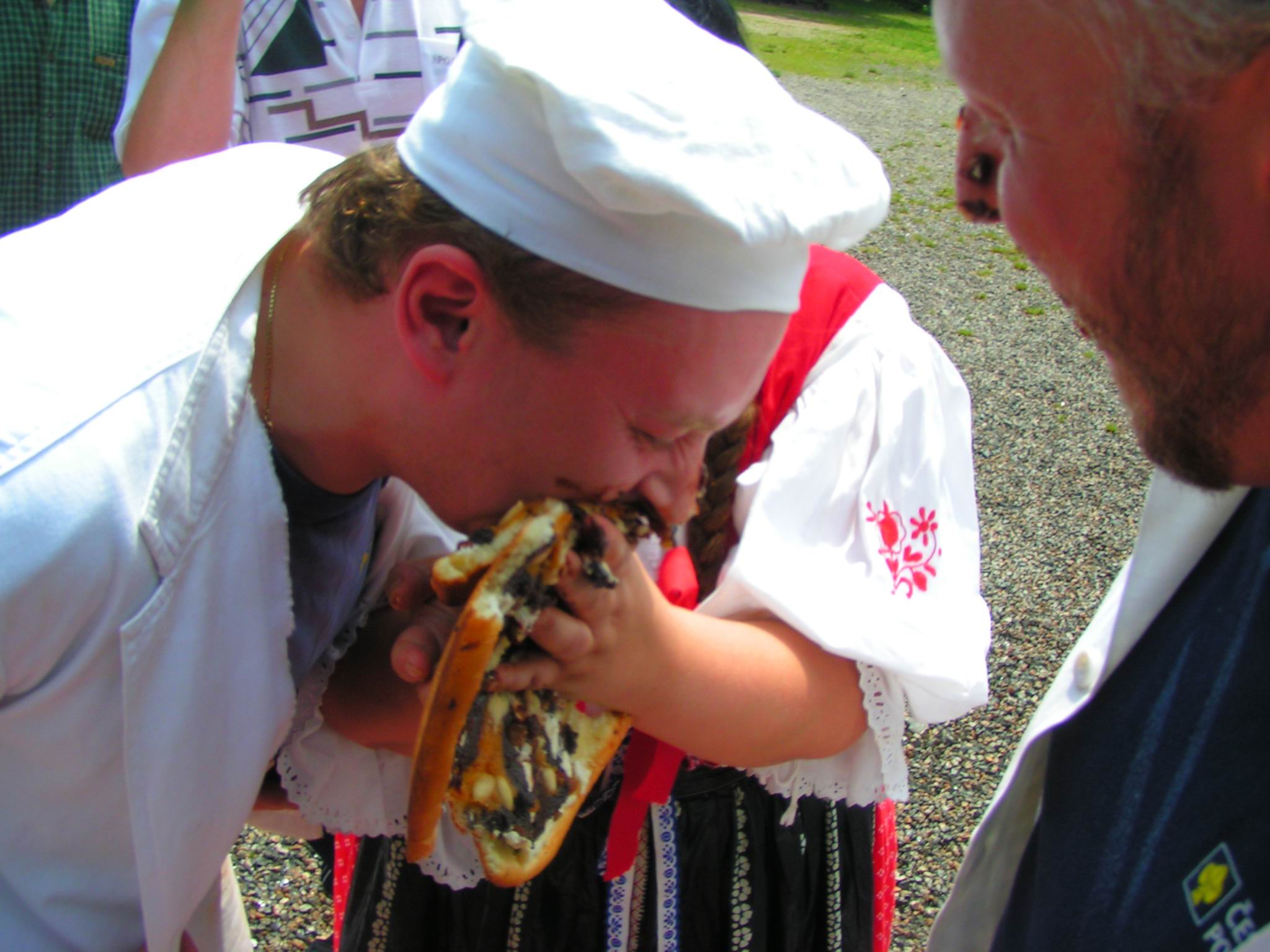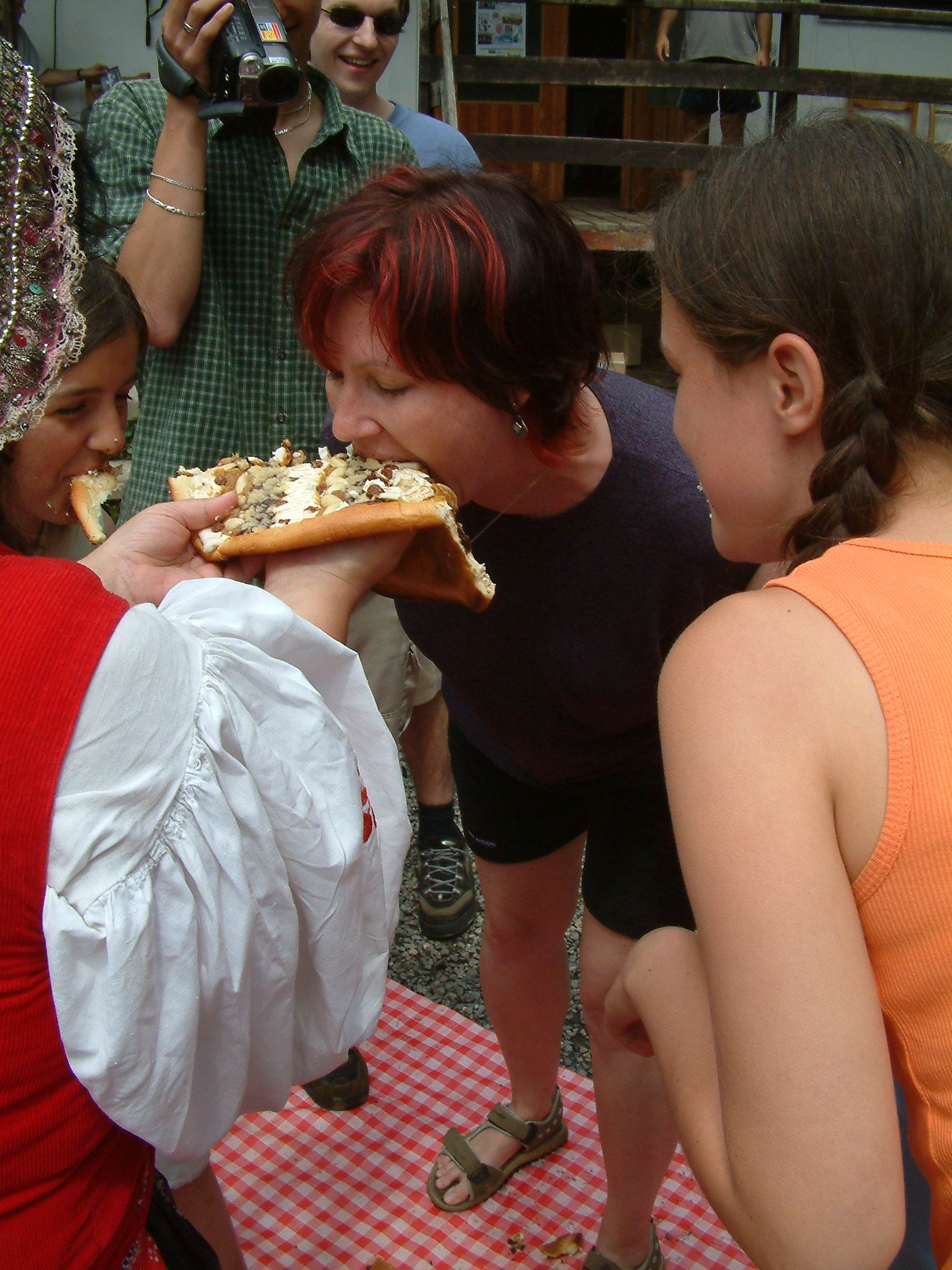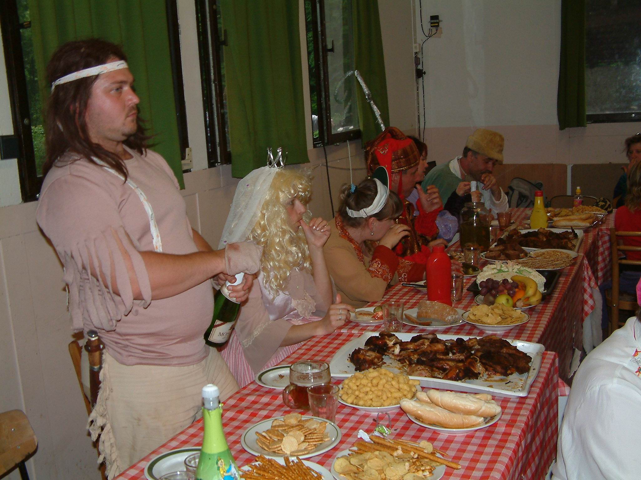 buřty, chléb, hořčice buchty (bábovka), kakao gulášová polévka, játra s rýží uzené vepřové kýty, chléb, hořčice rohlíky se sýrem, čaj polévka (vývar), vepřové, knedlík a zelí svatební hostina kuře a jiné maso na grilu s chlebem, brambůrky, ovoce a zelenina, salát, sušenky, dort a proudy šampaňského chléb s paštikou, čaj špagety s omáčkou doma |