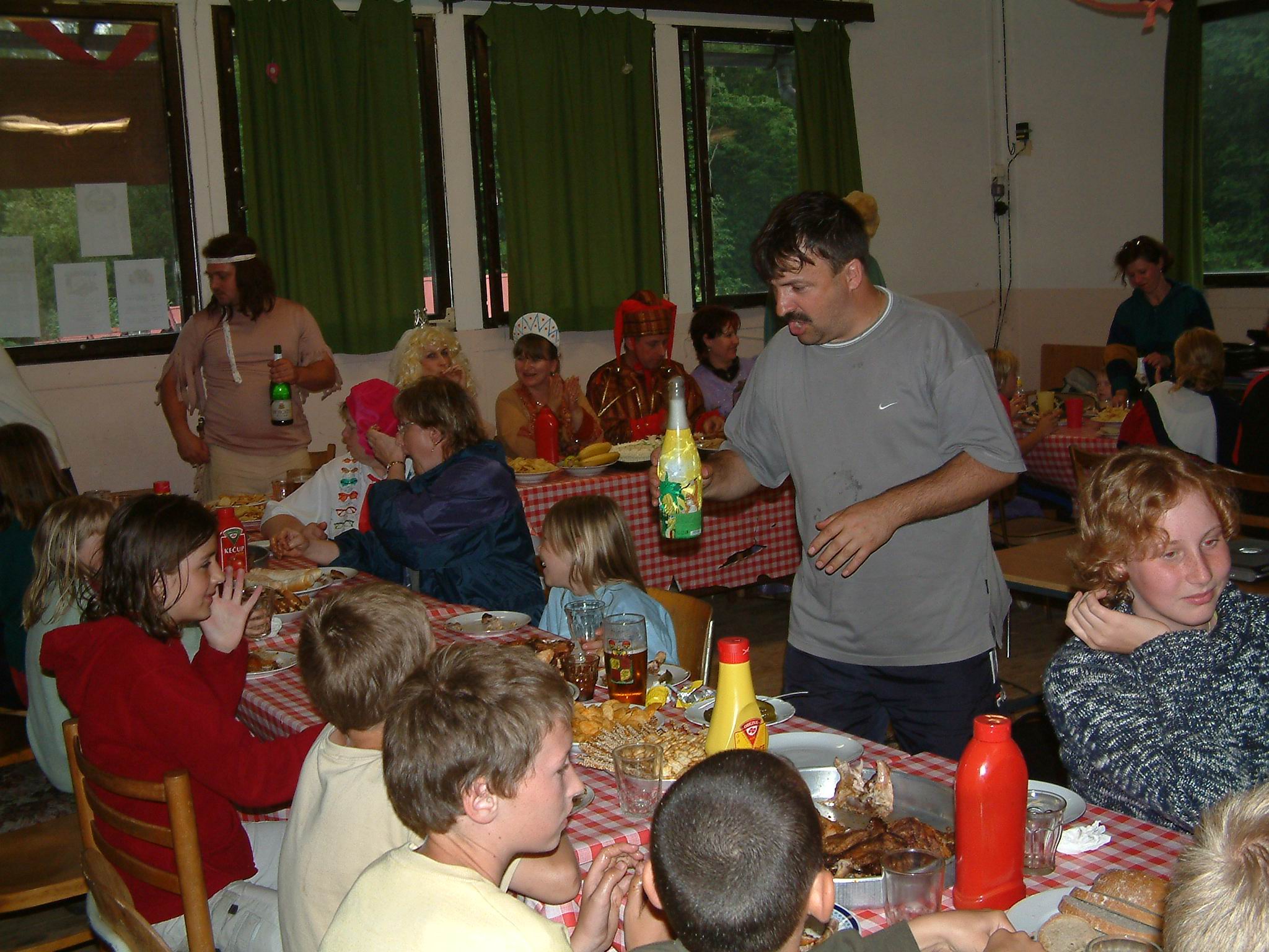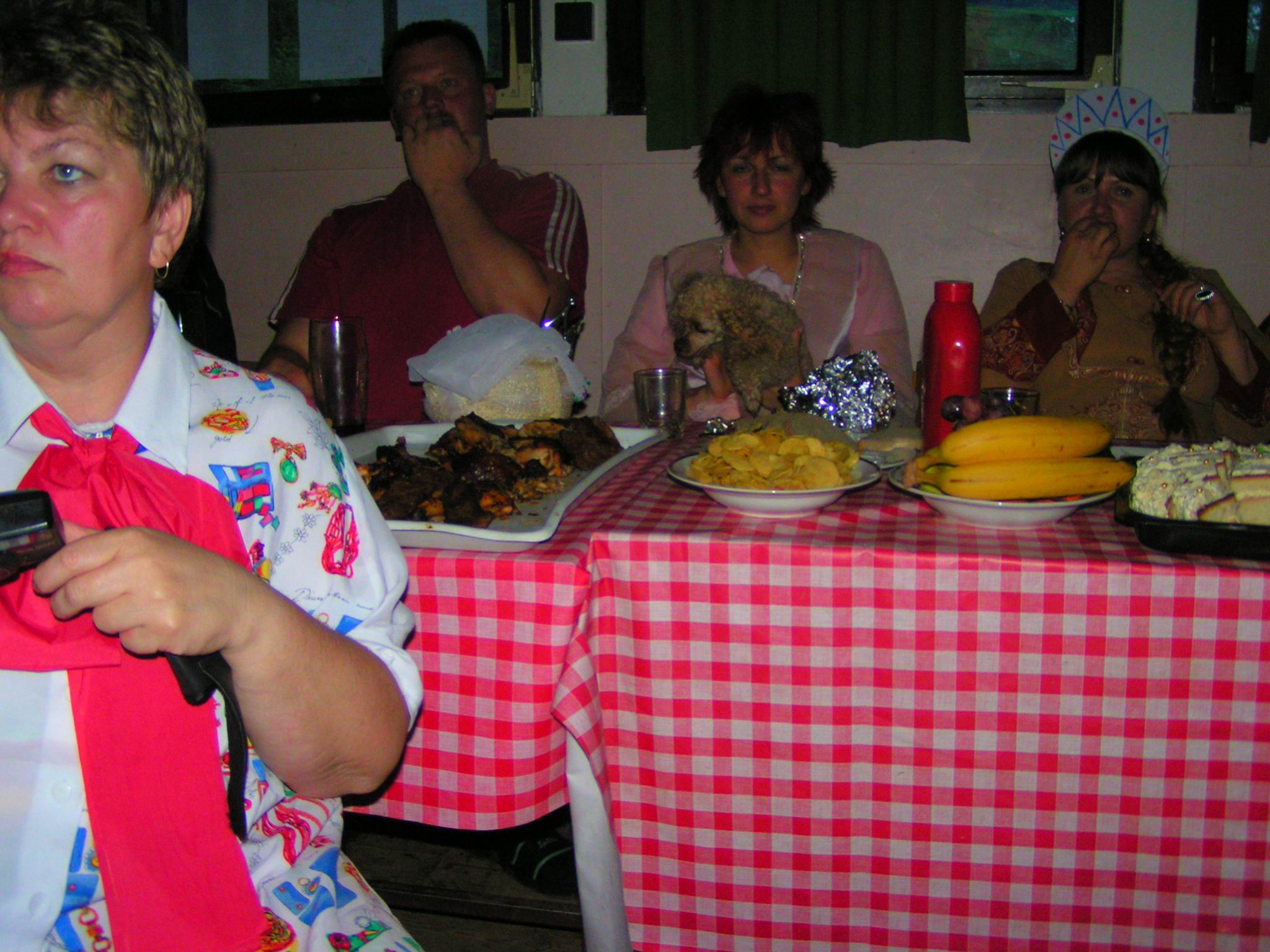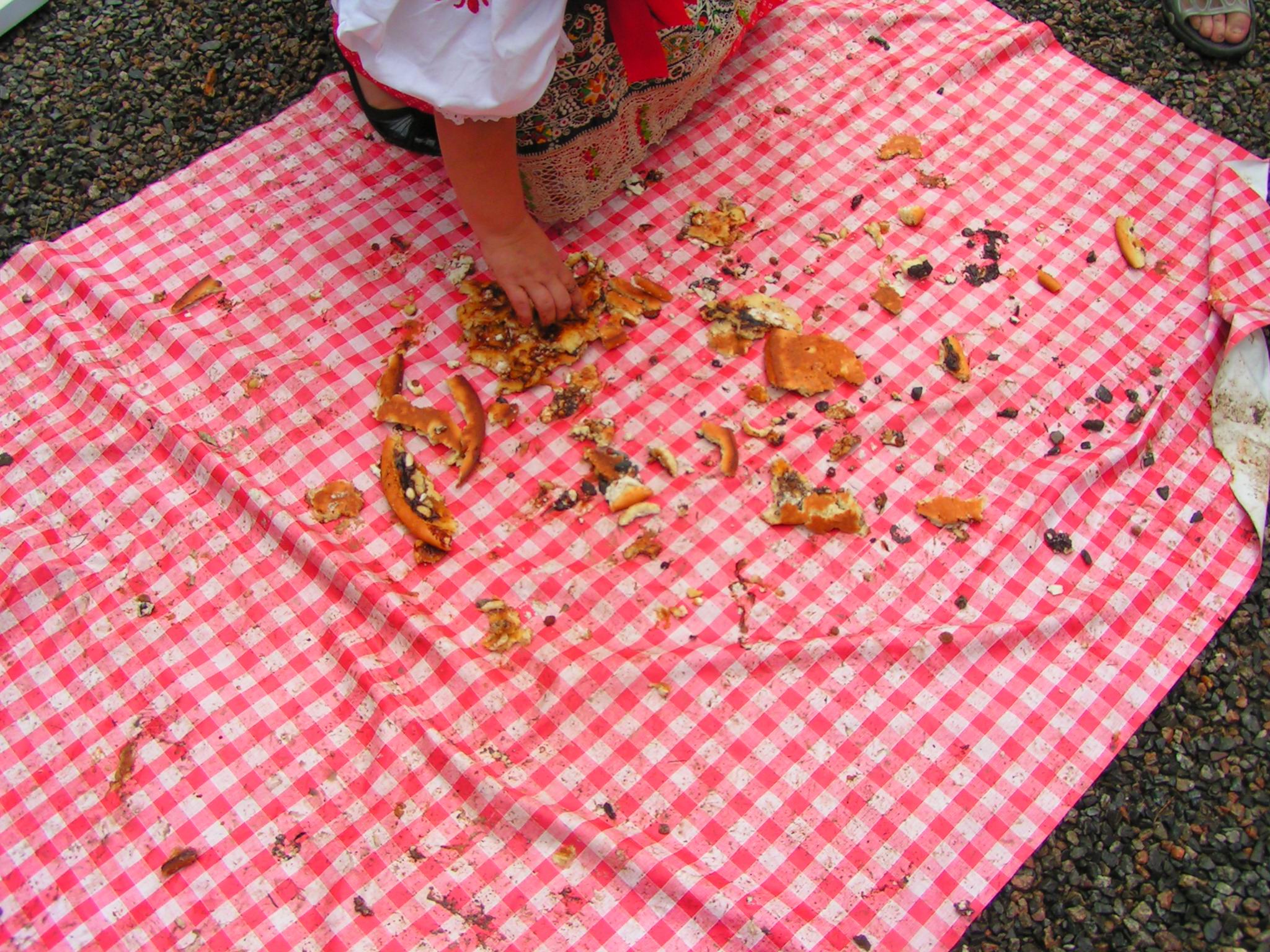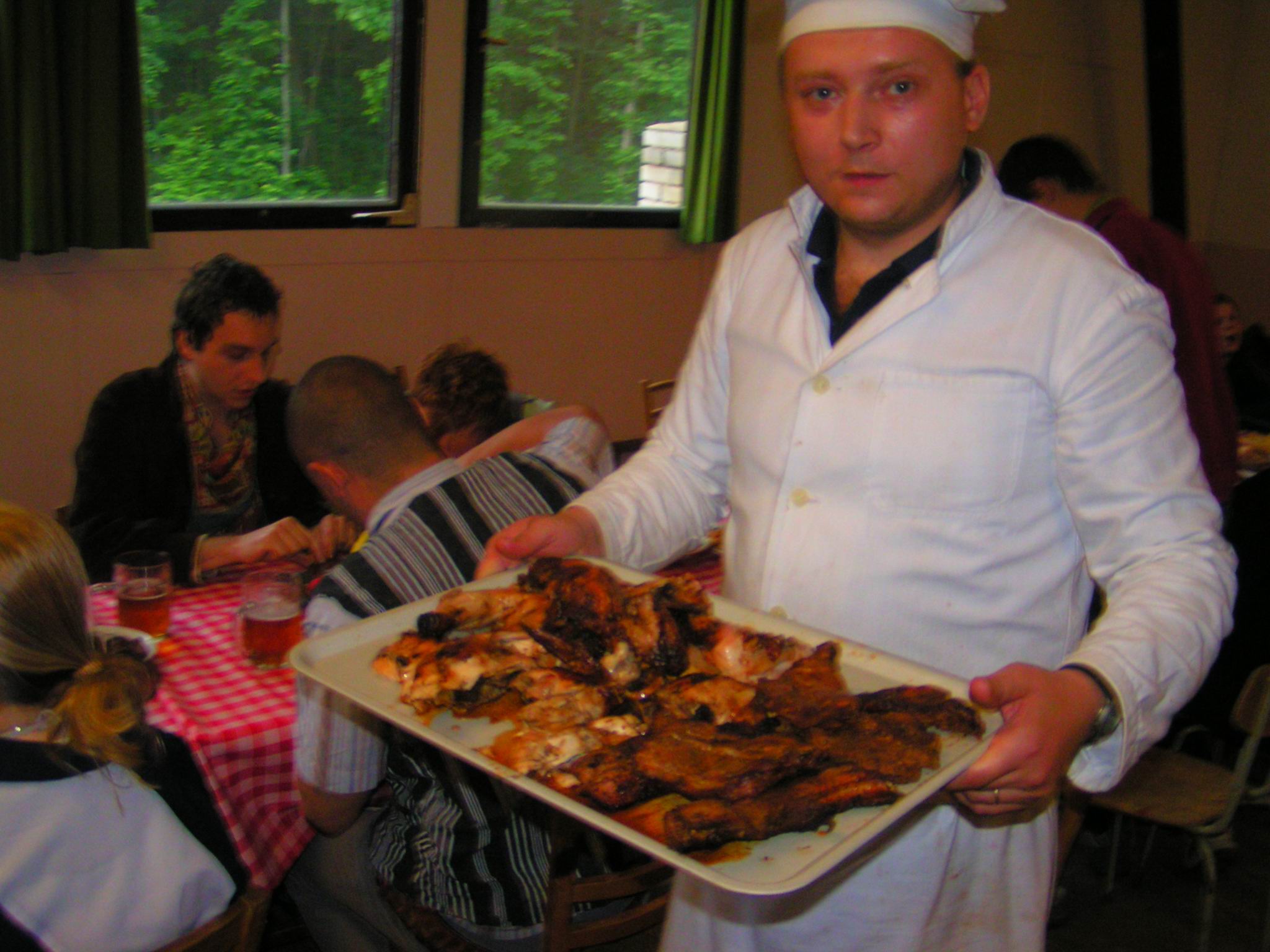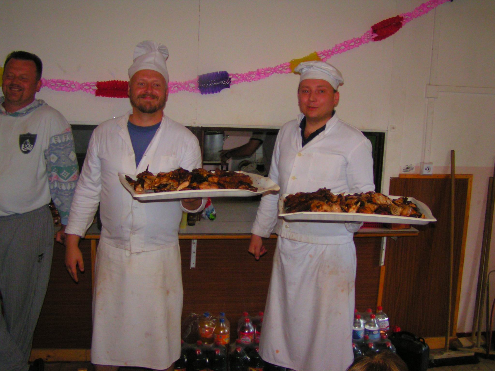 buřty, chléb, hořčice buchty (bábovka), kakao gulášová polévka, játra s rýží uzené vepřové kýty, chléb, hořčice rohlíky se sýrem, čaj polévka (vývar), vepřové, knedlík a zelí svatební hostina kuře a jiné maso na grilu s chlebem, brambůrky, ovoce a zelenina, salát, sušenky, dort a proudy šampaňského chléb s paštikou, čaj špagety s omáčkou doma |