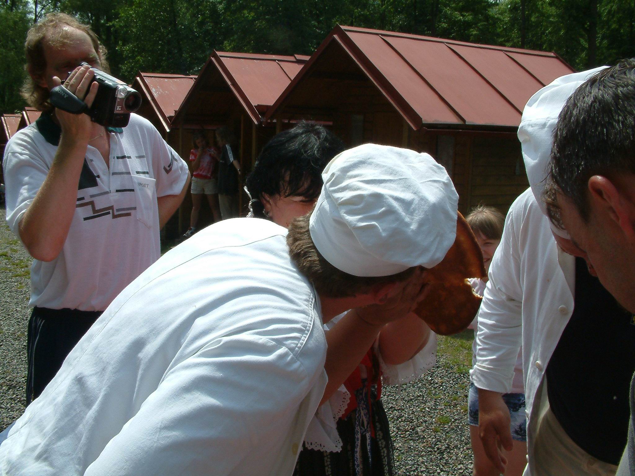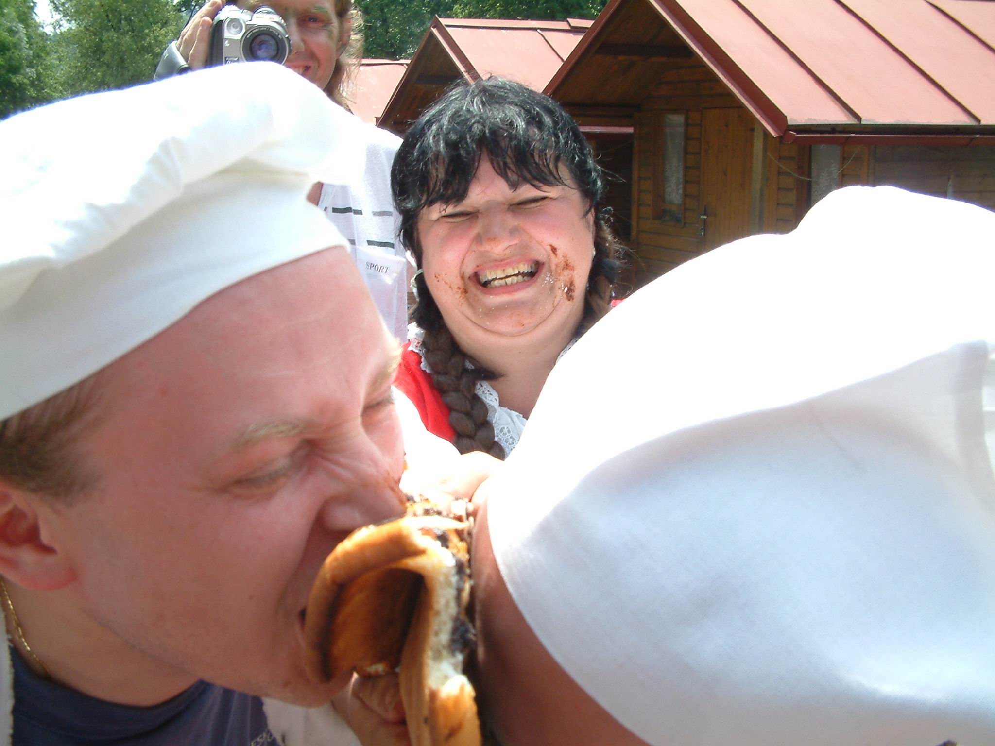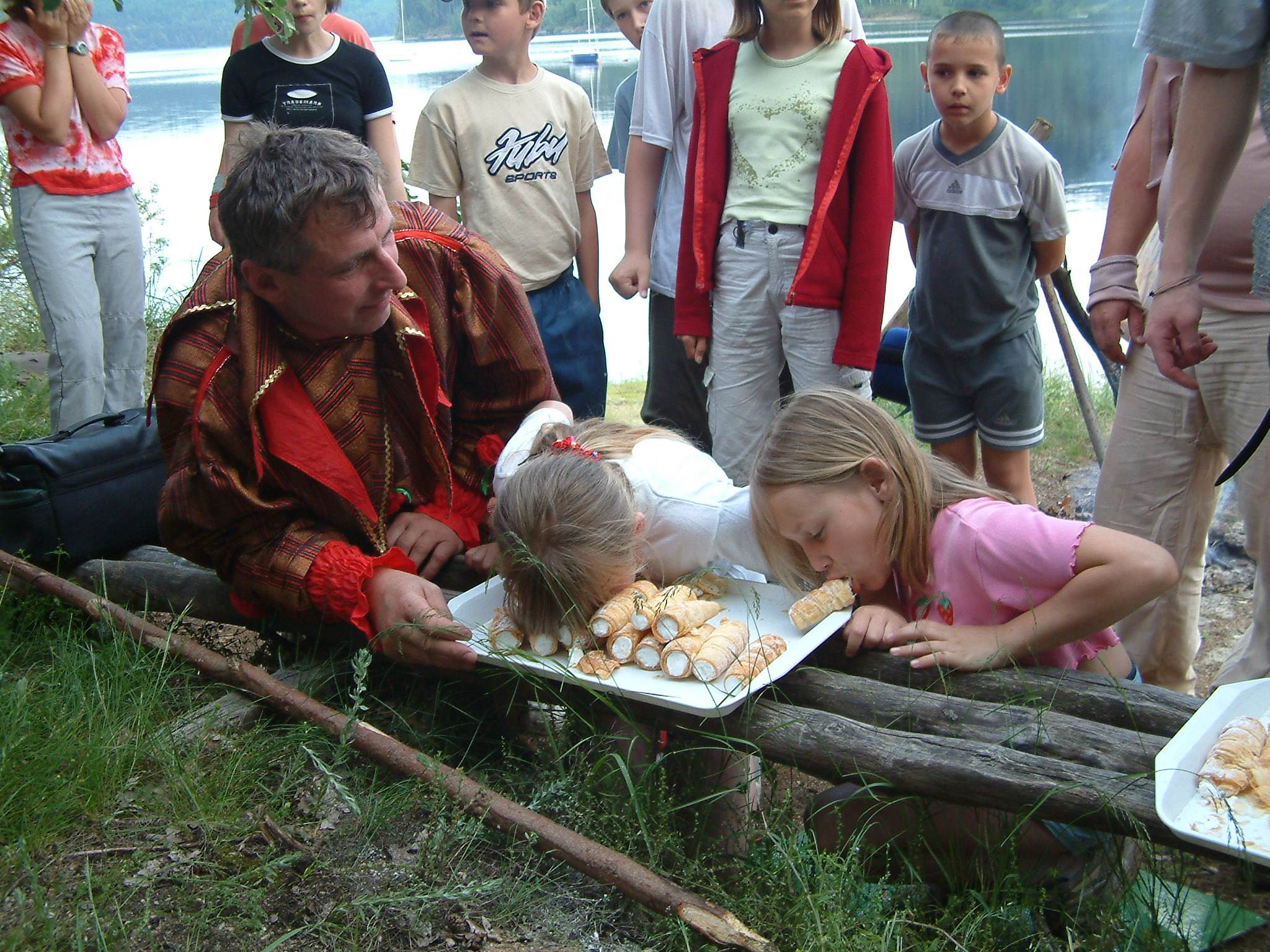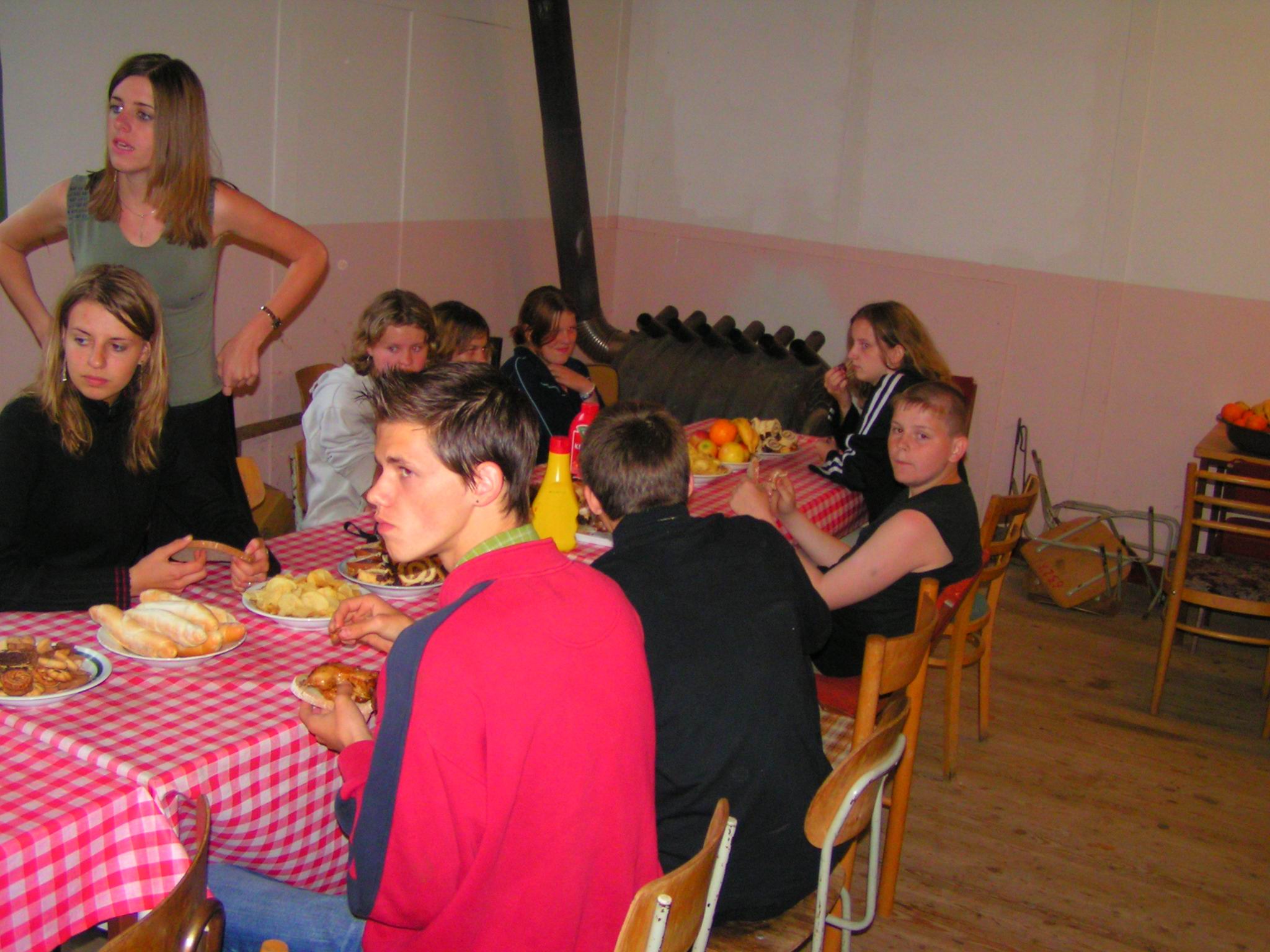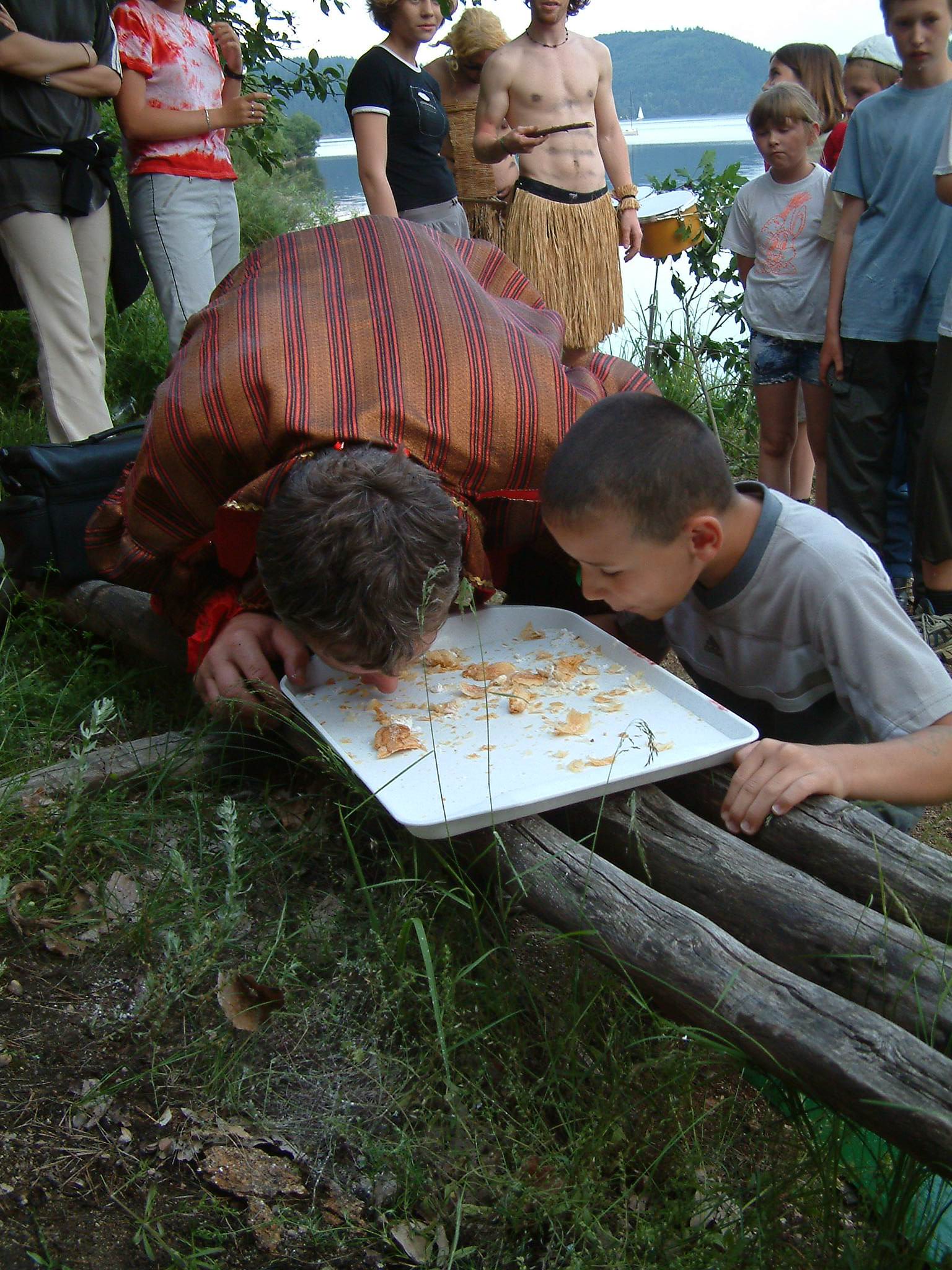 buřty, chléb, hořčice buchty (bábovka), kakao gulášová polévka, játra s rýží uzené vepřové kýty, chléb, hořčice rohlíky se sýrem, čaj polévka (vývar), vepřové, knedlík a zelí svatební hostina kuře a jiné maso na grilu s chlebem, brambůrky, ovoce a zelenina, salát, sušenky, dort a proudy šampaňského chléb s paštikou, čaj špagety s omáčkou doma |