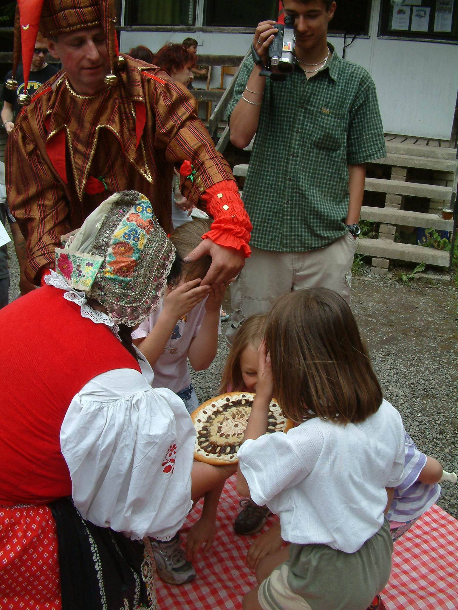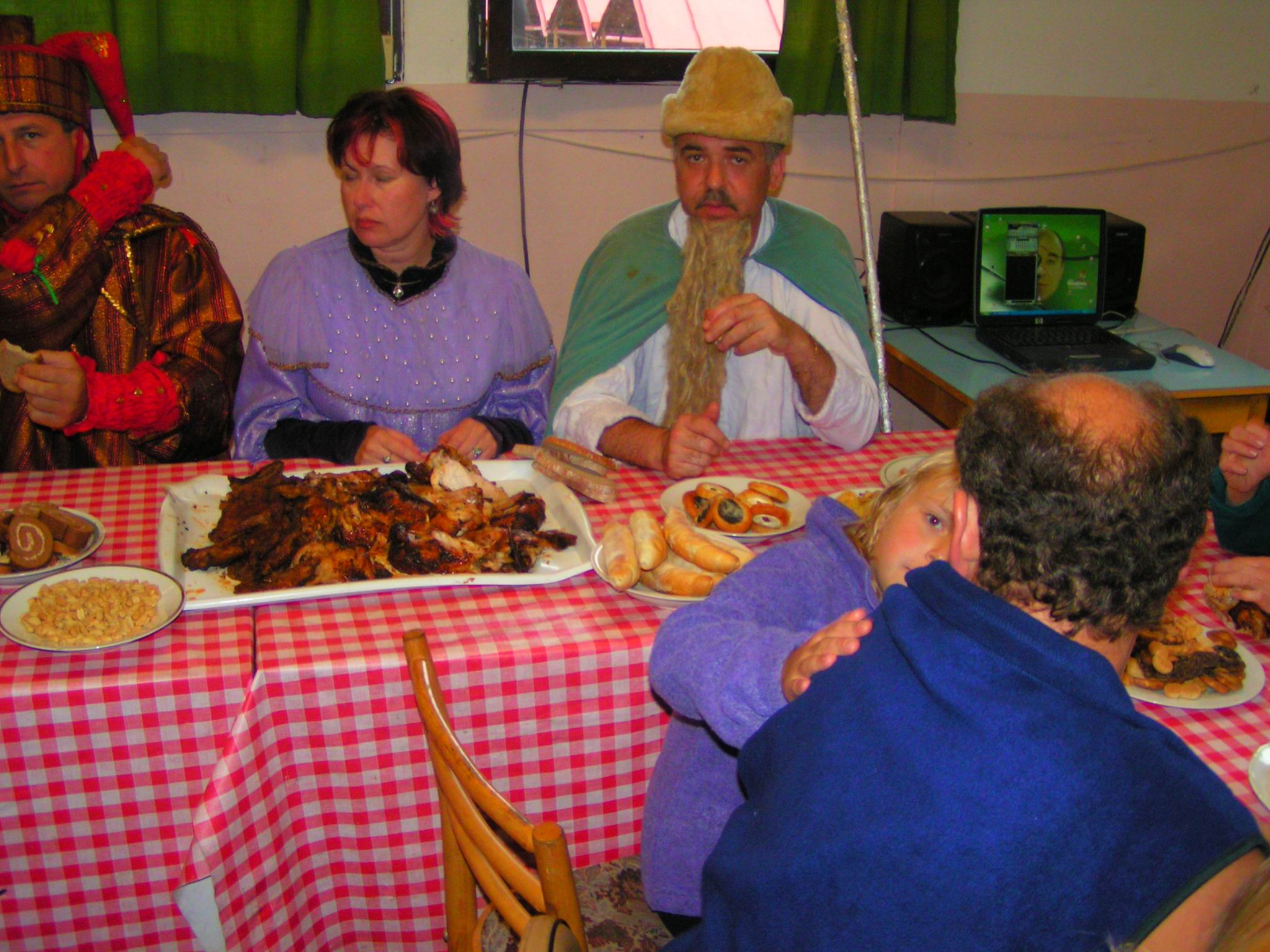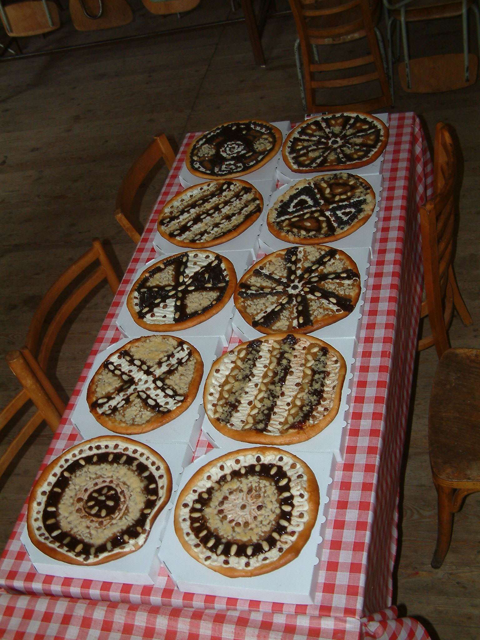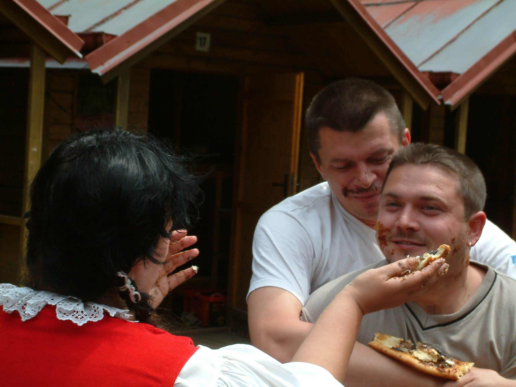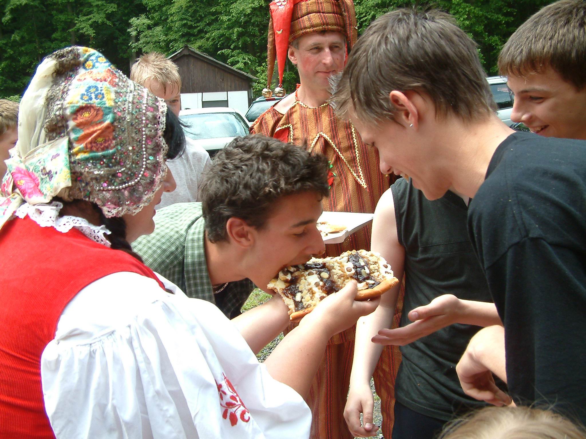 buřty, chléb, hořčice buchty (bábovka), kakao gulášová polévka, játra s rýží uzené vepřové kýty, chléb, hořčice rohlíky se sýrem, čaj polévka (vývar), vepřové, knedlík a zelí svatební hostina kuře a jiné maso na grilu s chlebem, brambůrky, ovoce a zelenina, salát, sušenky, dort a proudy šampaňského chléb s paštikou, čaj špagety s omáčkou doma |