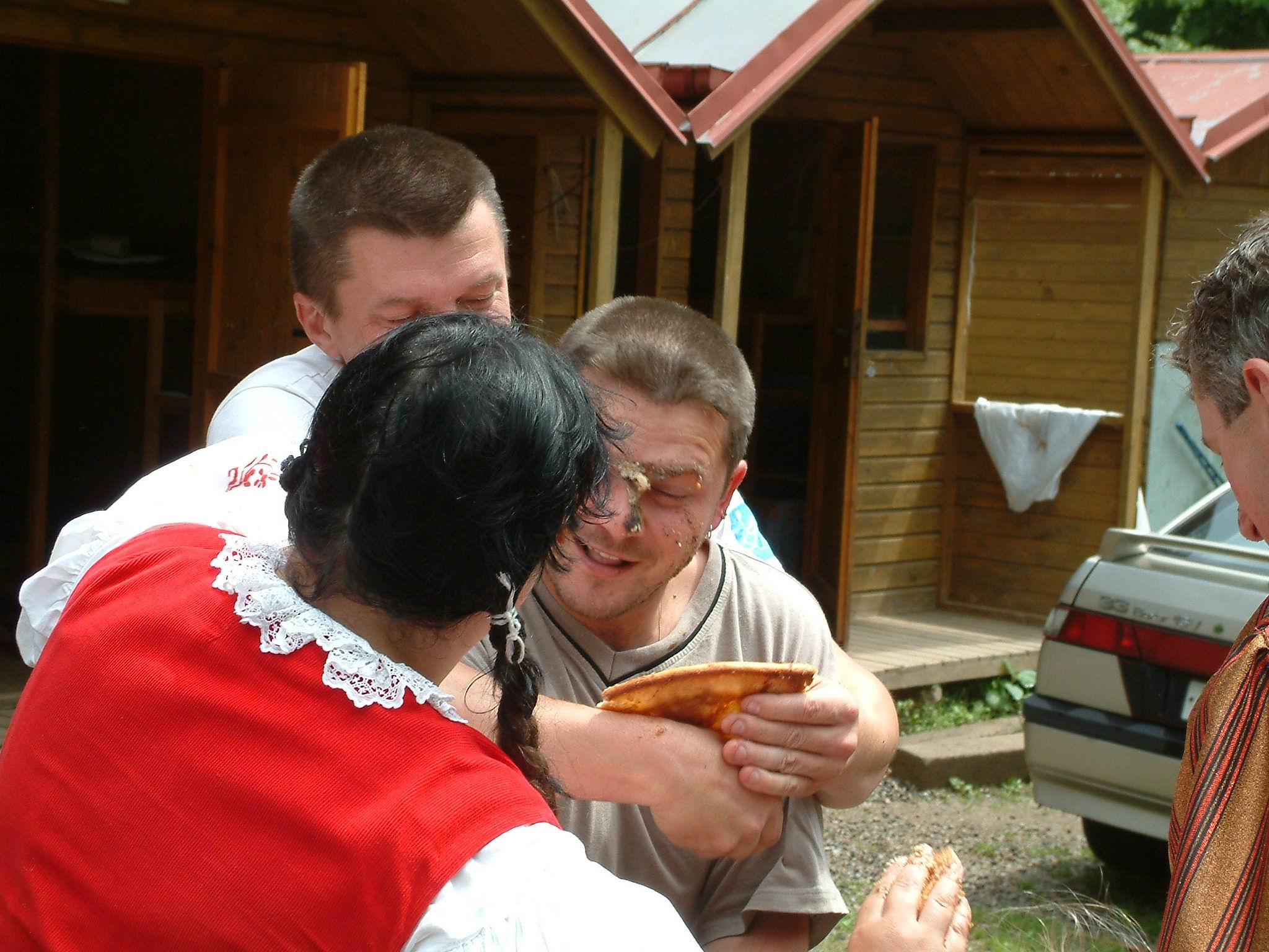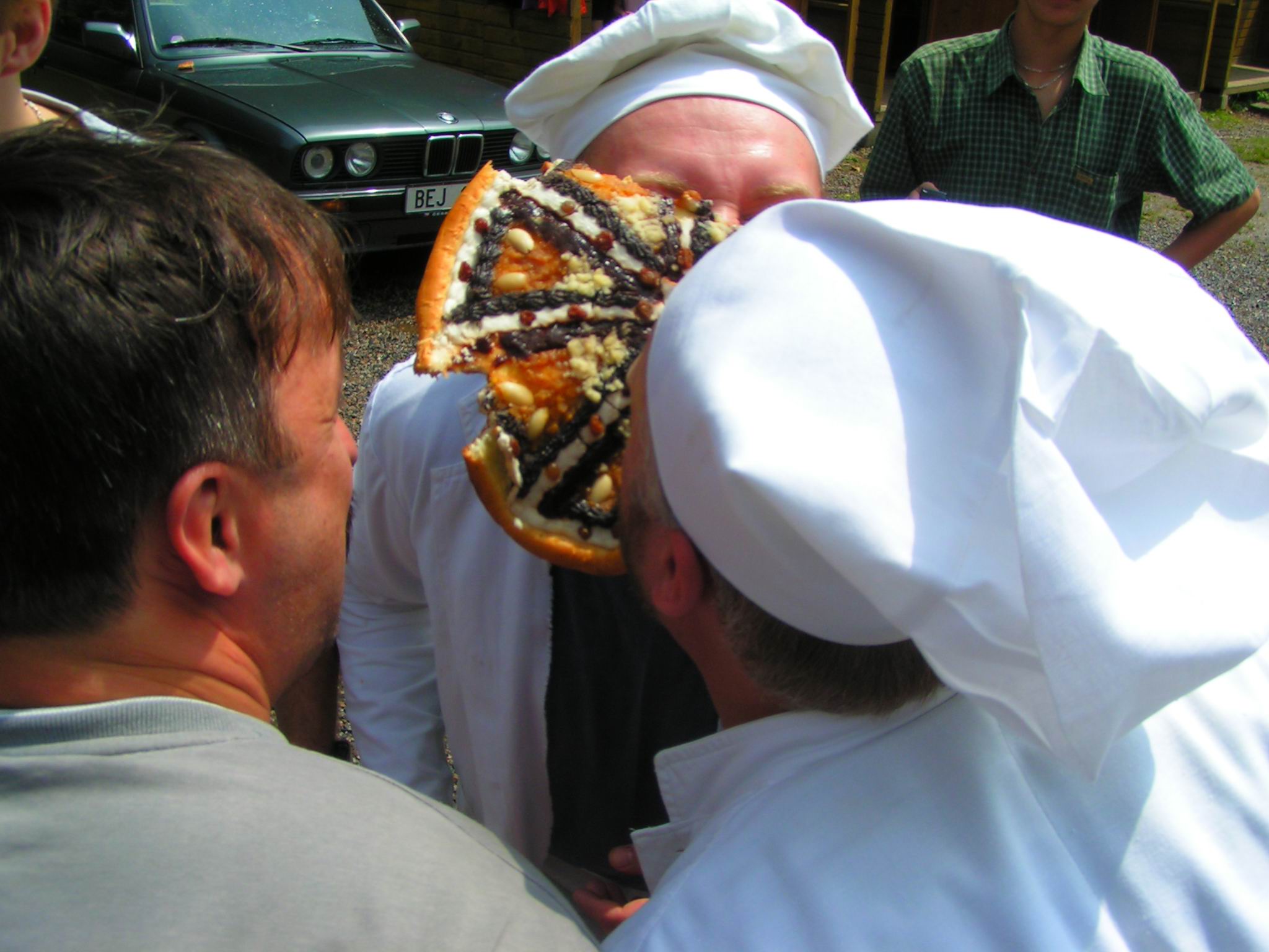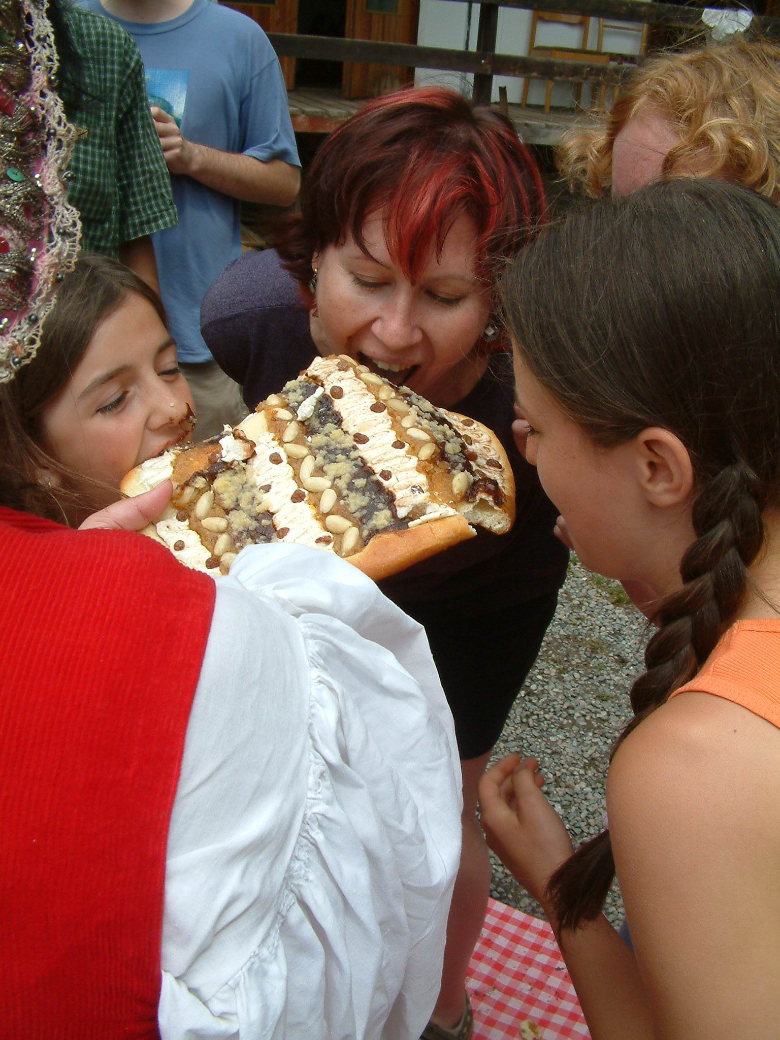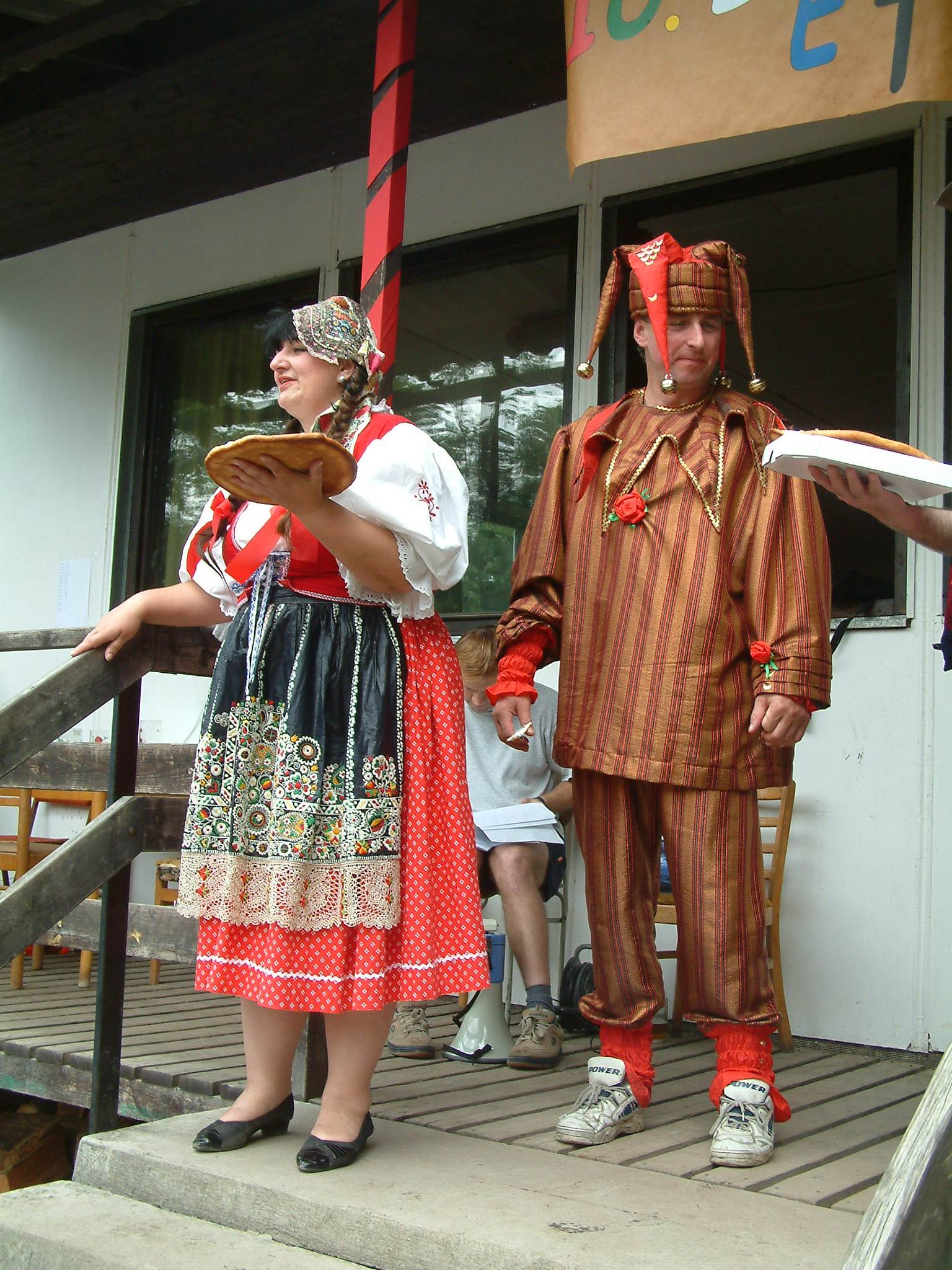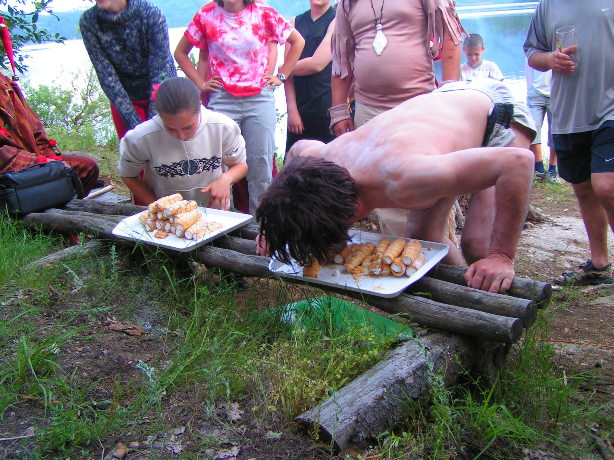 buřty, chléb, hořčice buchty (bábovka), kakao gulášová polévka, játra s rýží uzené vepřové kýty, chléb, hořčice rohlíky se sýrem, čaj polévka (vývar), vepřové, knedlík a zelí svatební hostina kuře a jiné maso na grilu s chlebem, brambůrky, ovoce a zelenina, salát, sušenky, dort a proudy šampaňského chléb s paštikou, čaj špagety s omáčkou doma |