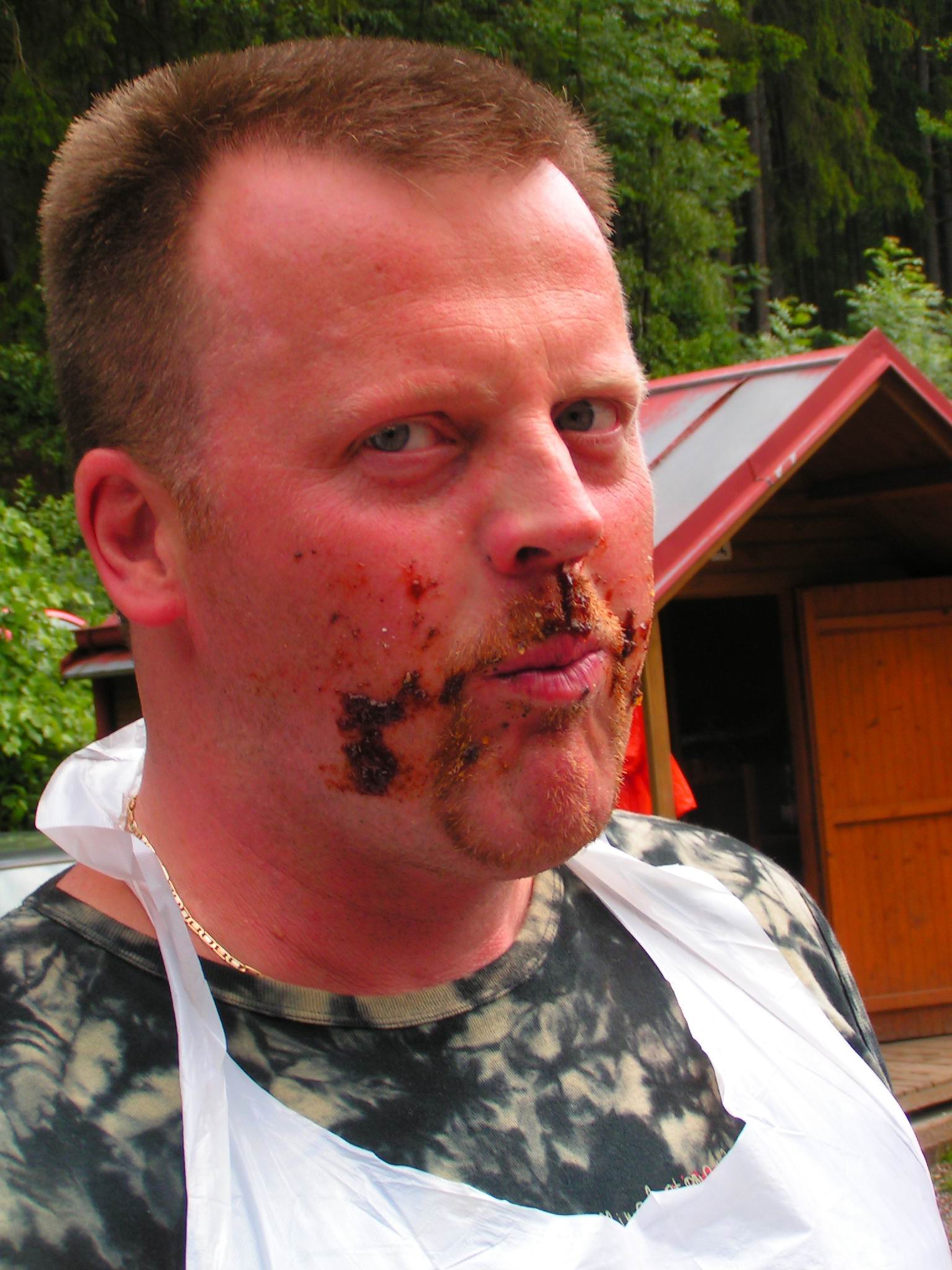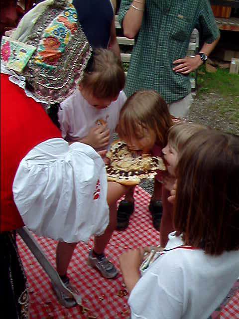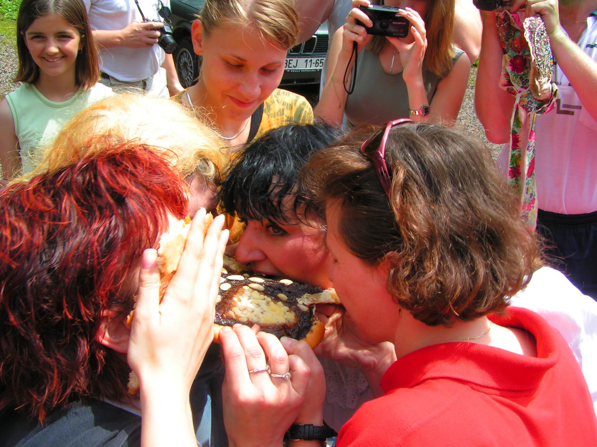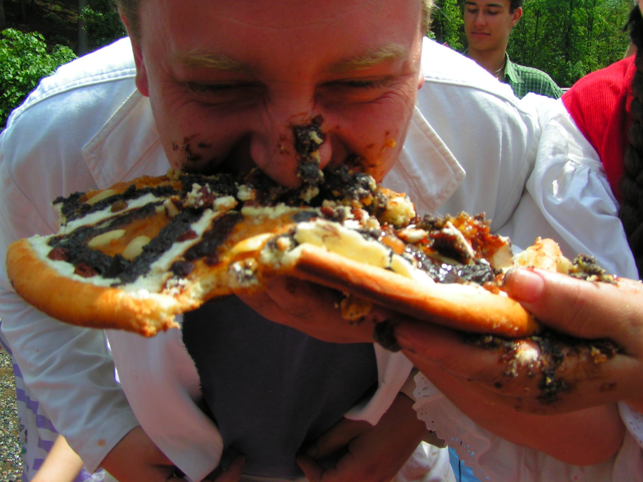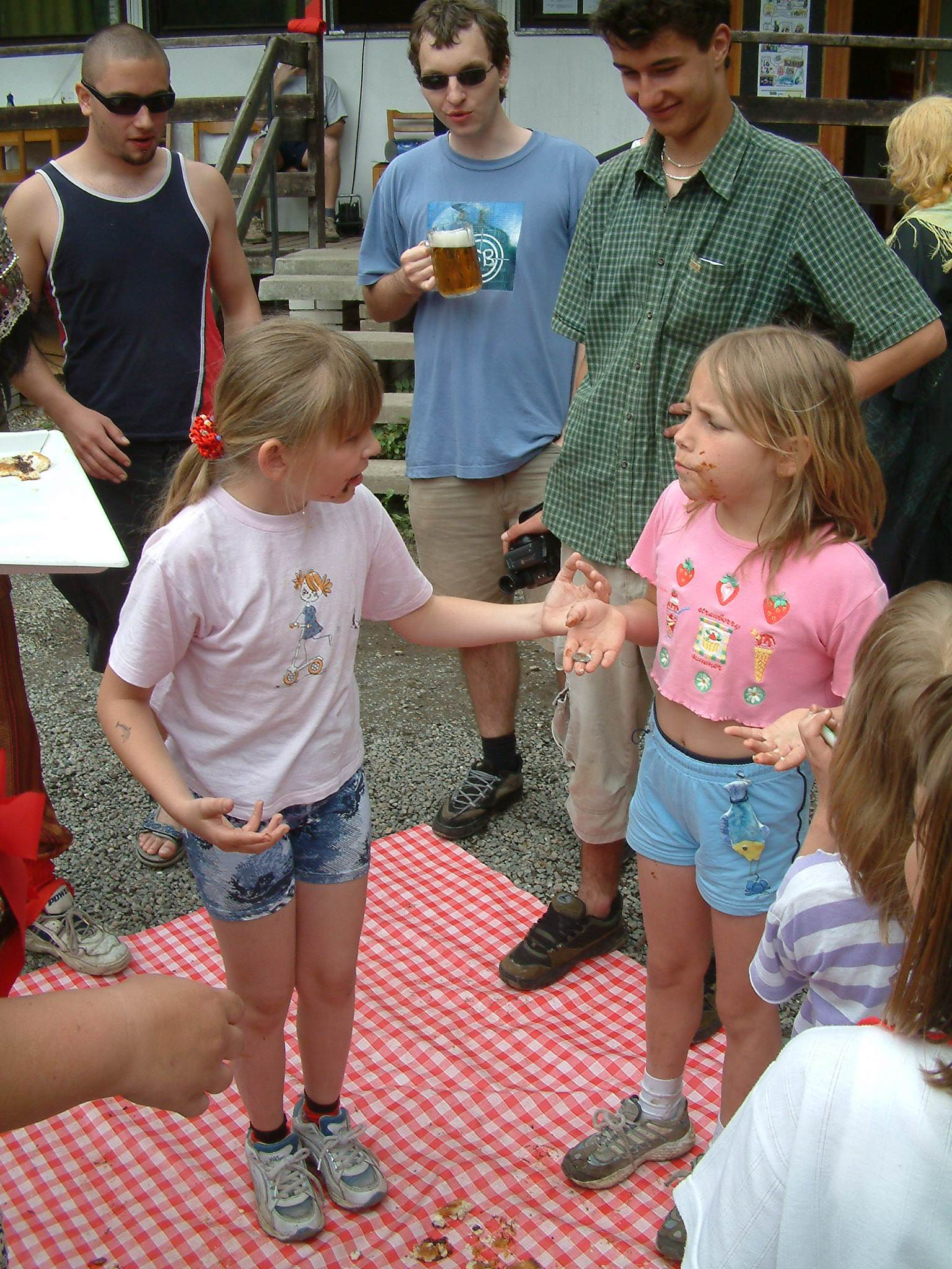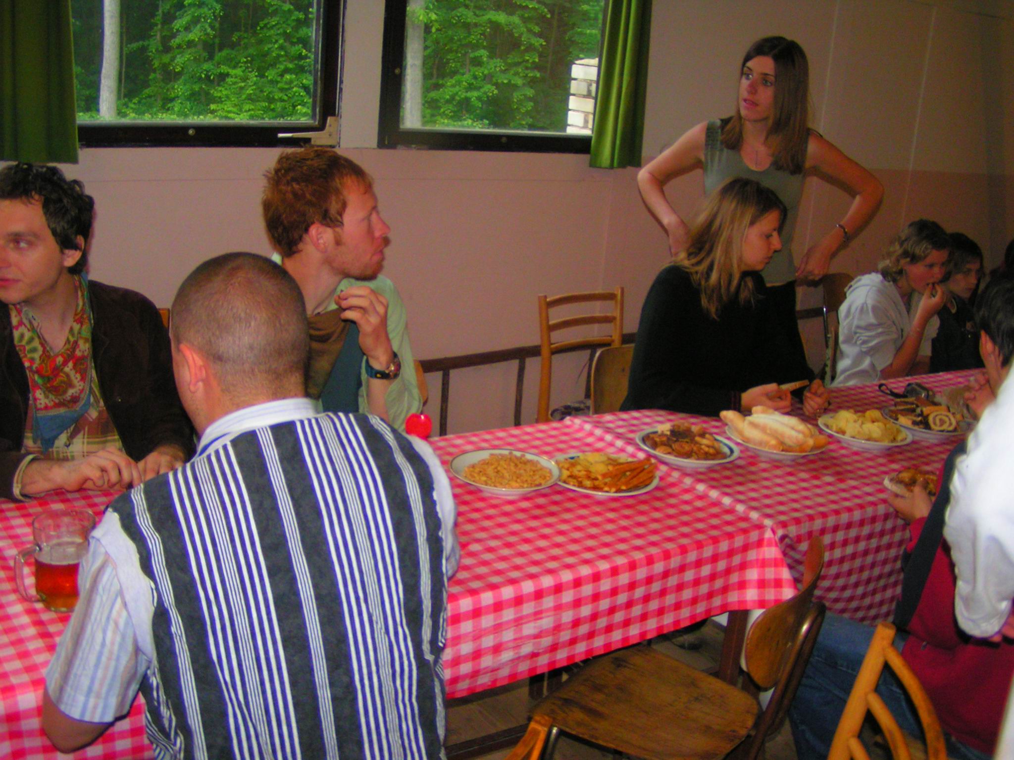 buřty, chléb, hořčice buchty (bábovka), kakao gulášová polévka, játra s rýží uzené vepřové kýty, chléb, hořčice rohlíky se sýrem, čaj polévka (vývar), vepřové, knedlík a zelí svatební hostina kuře a jiné maso na grilu s chlebem, brambůrky, ovoce a zelenina, salát, sušenky, dort a proudy šampaňského chléb s paštikou, čaj špagety s omáčkou doma |