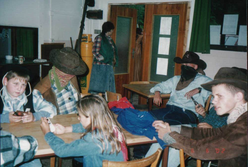 z vlastních zásob zvíře nad ohněm buchty, kakao chalupářský guláš + houskový knedlík buřty + chléb chléb s paštikou a sýrem, čaj luncheon + brambory doma po celou dobu z vlastních zásob, případně k zakoupení ve westernovém obchodě |