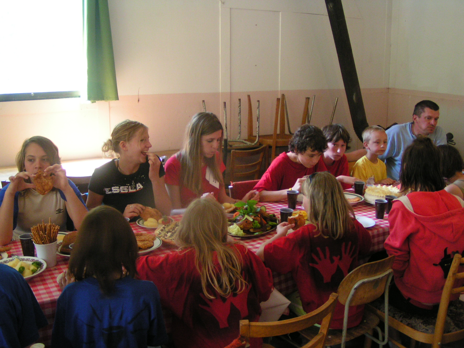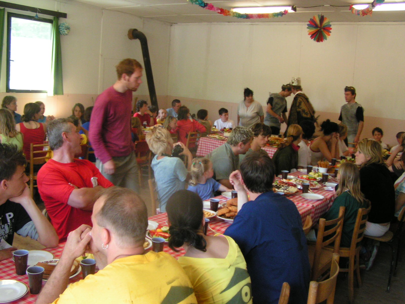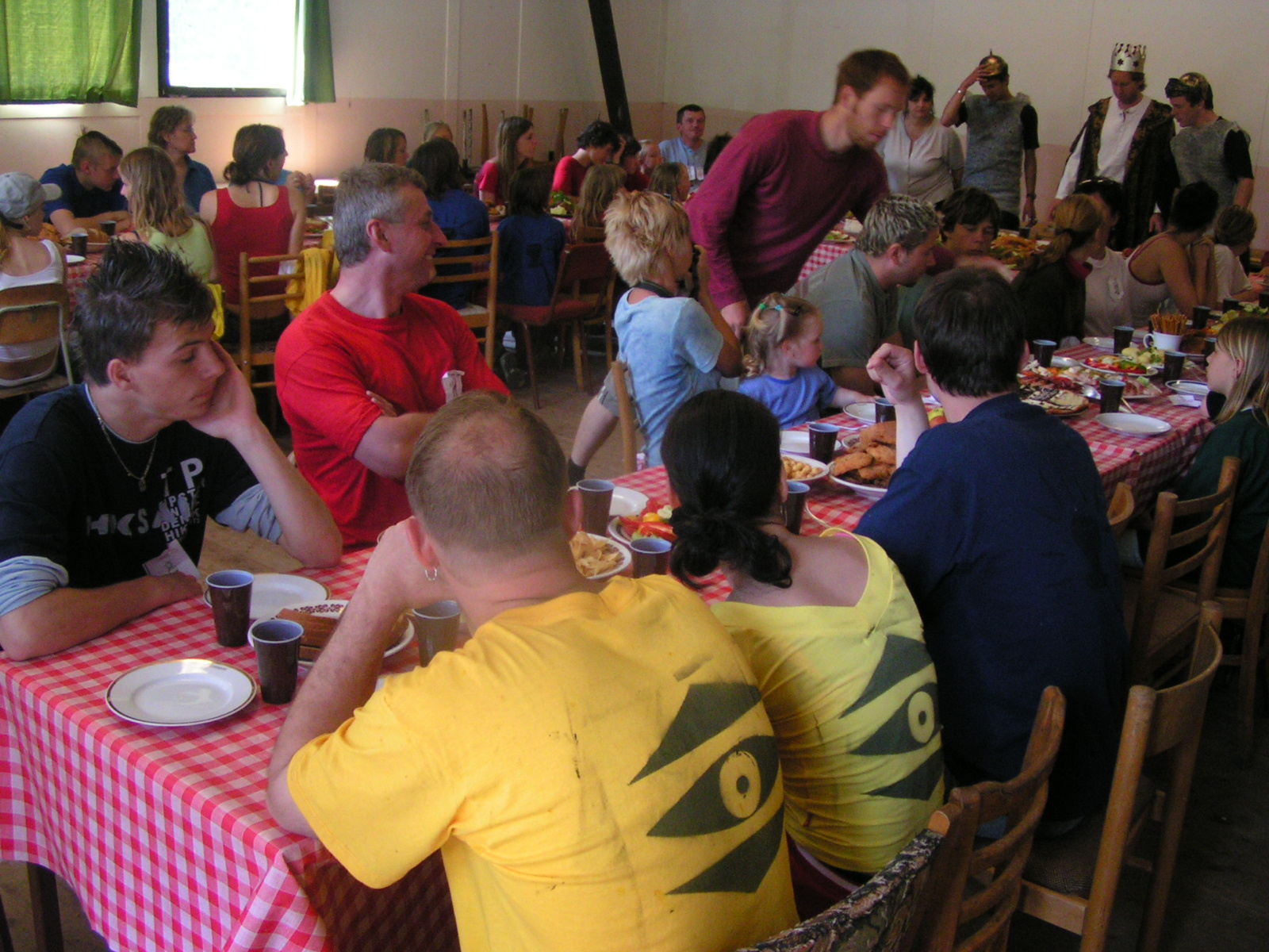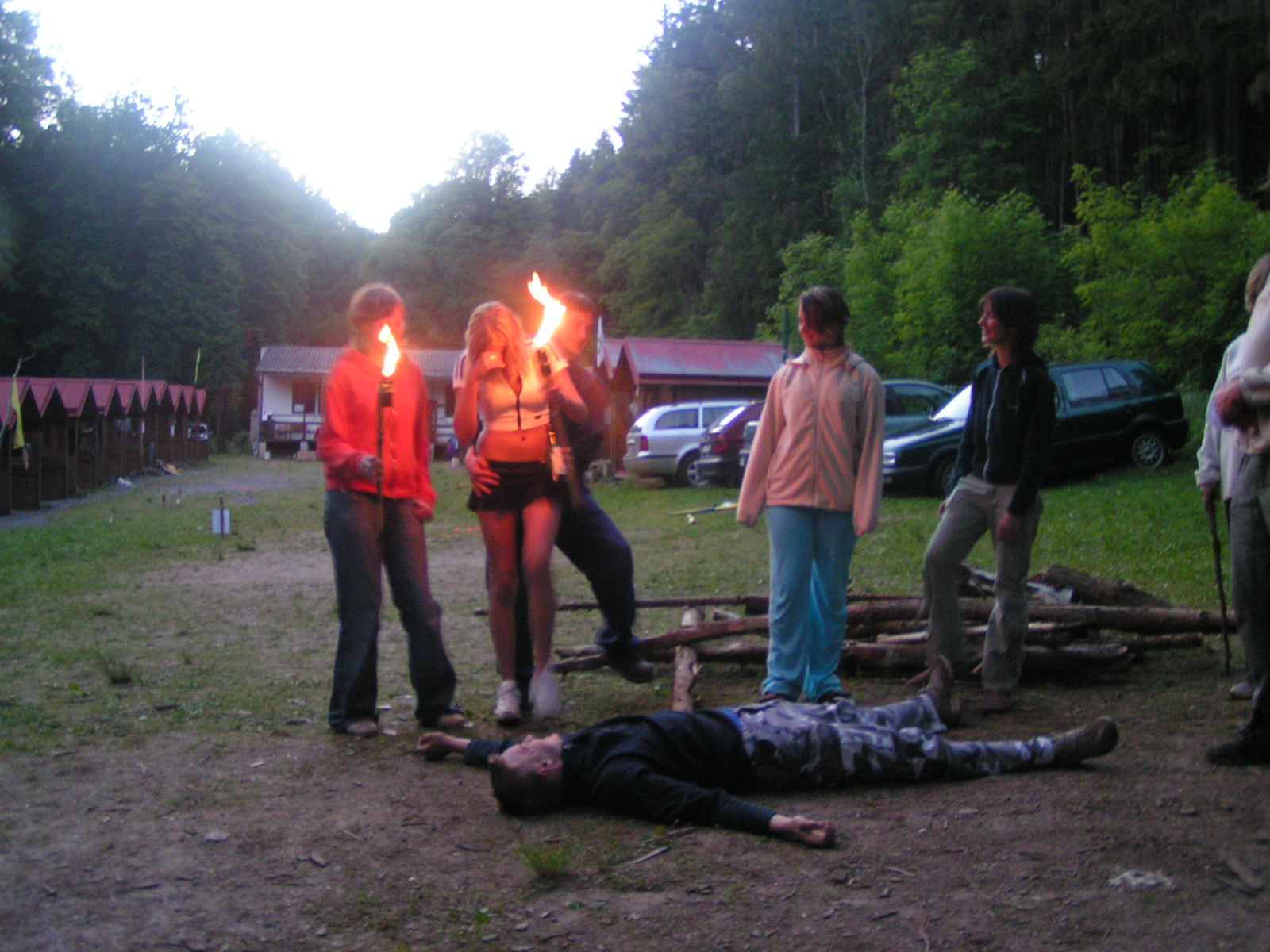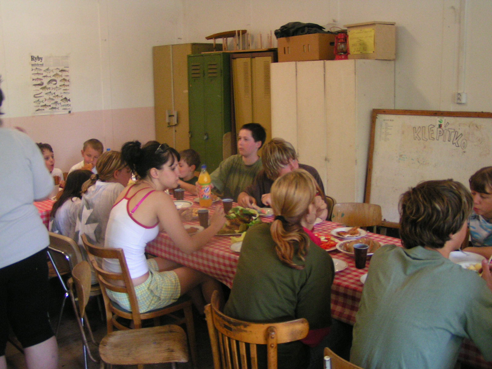 buřty, párky, klobásy - vlastní - nad ohněm rohlíky se sýrem a čajem polévka (vývar s nudlemi), guláš s knedlíkem vepřová krkovice nad plamenem, chléb buchty, chléb s paštikou a kakao královská hostina |