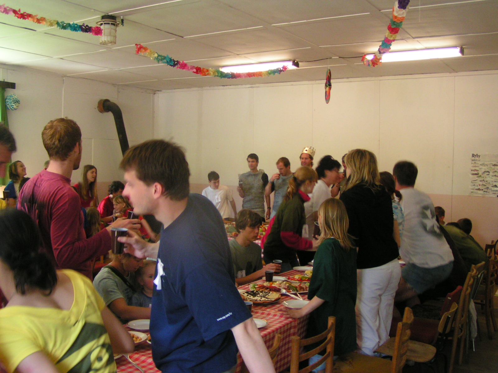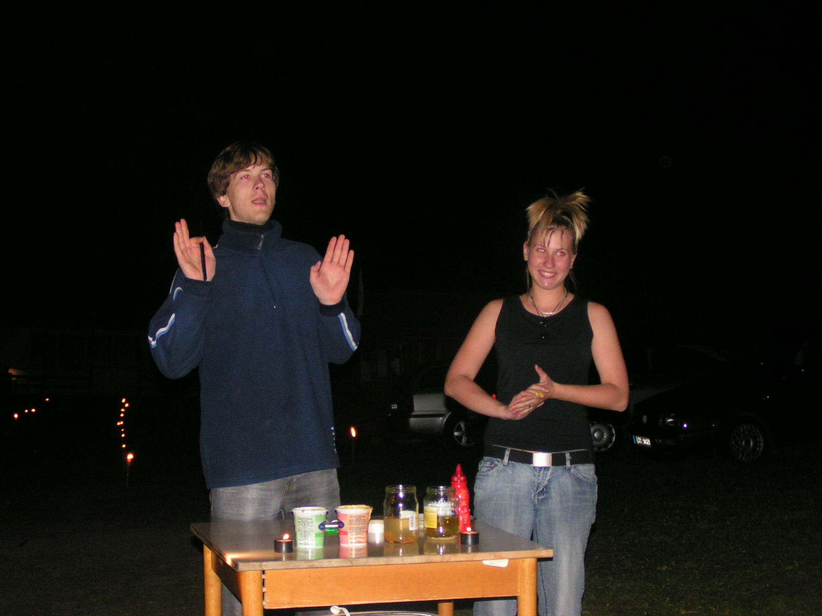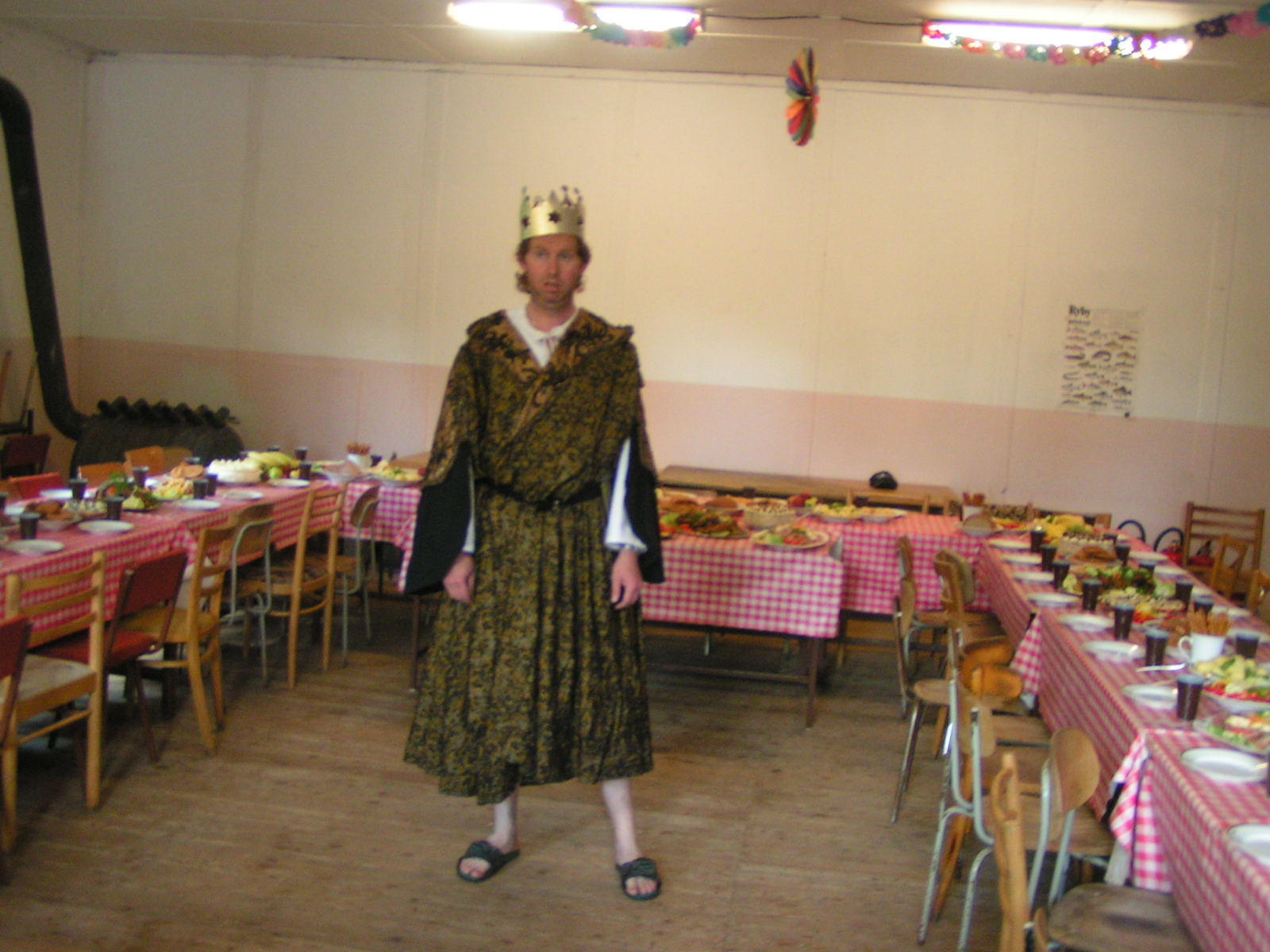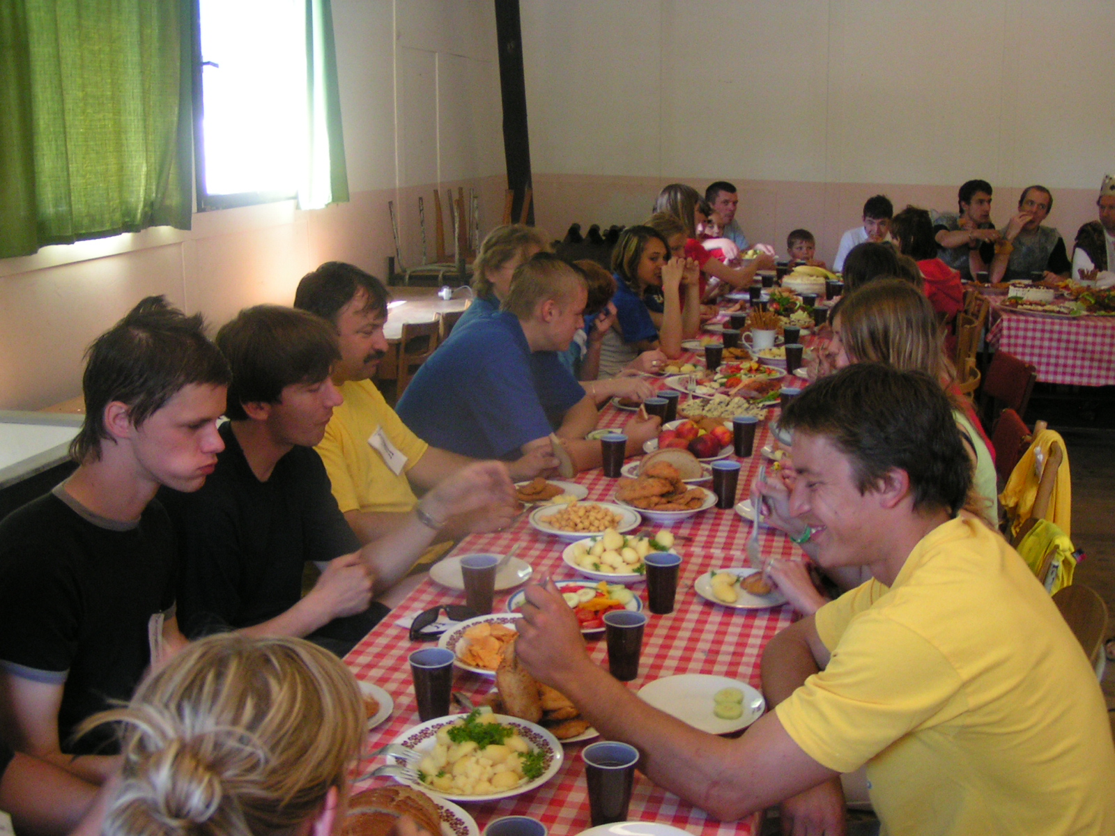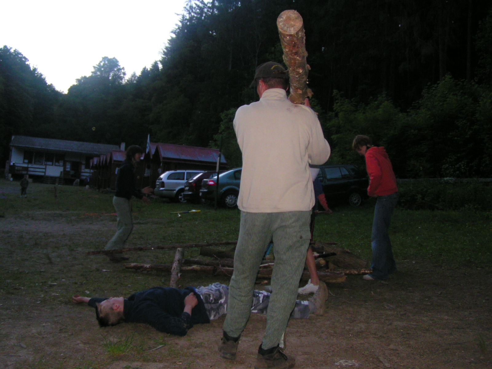 buřty, párky, klobásy - vlastní - nad ohněm rohlíky se sýrem a čajem polévka (vývar s nudlemi), guláš s knedlíkem vepřová krkovice nad plamenem, chléb buchty, chléb s paštikou a kakao královská hostina |