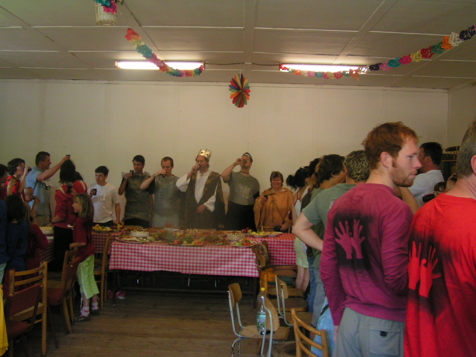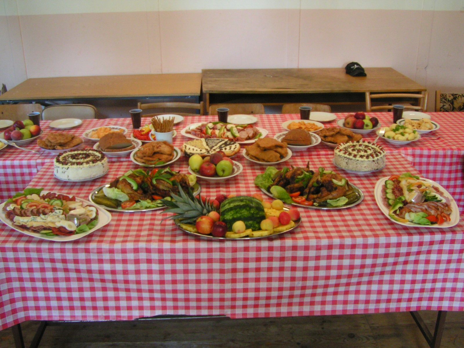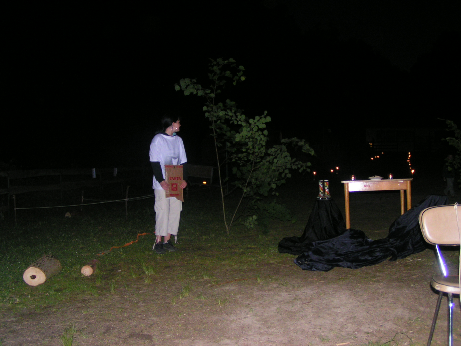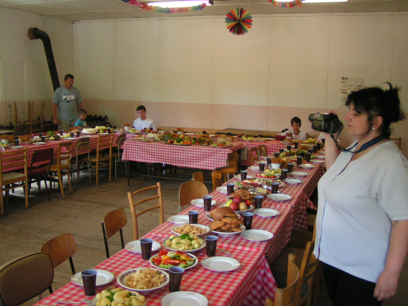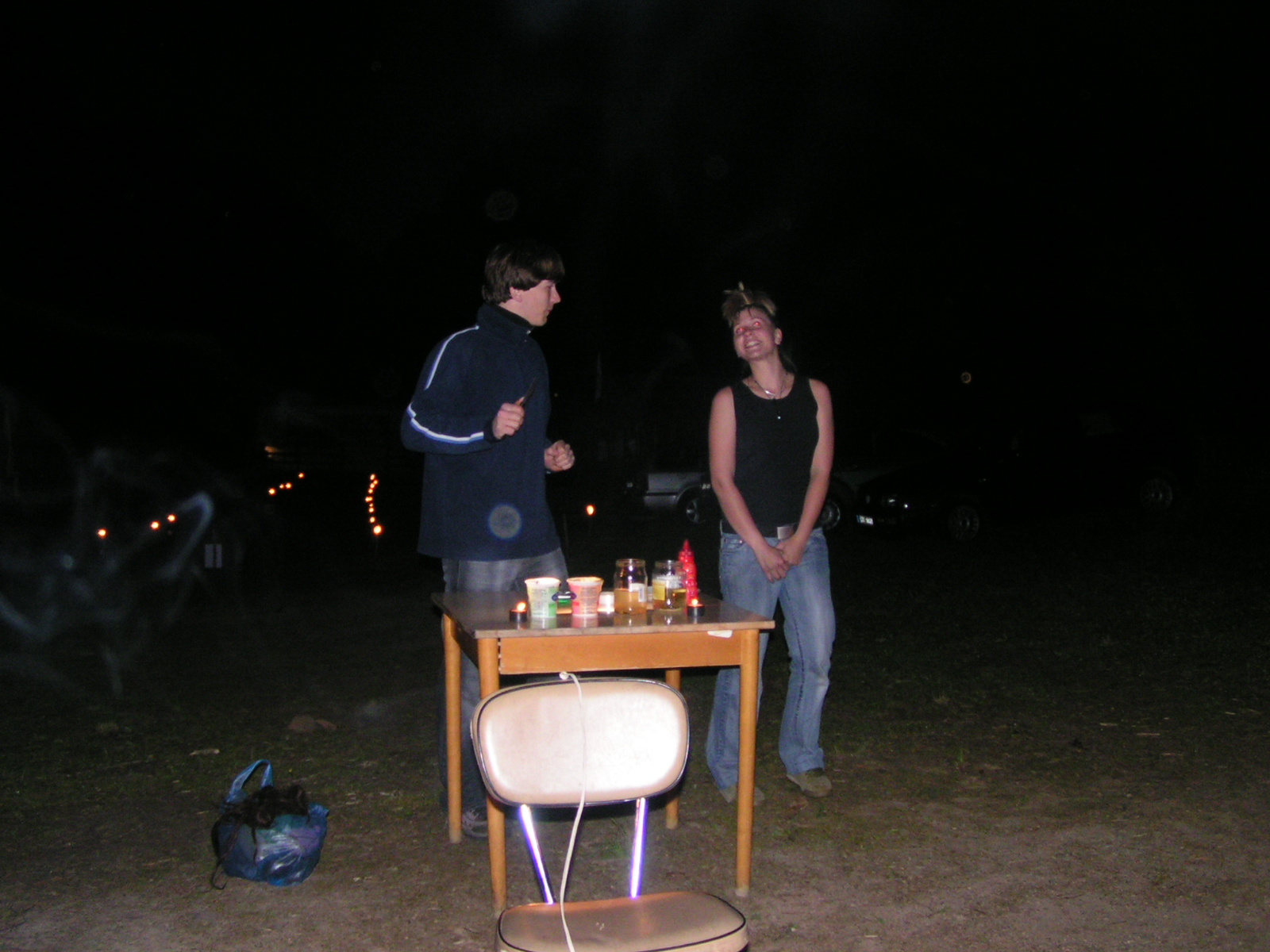 buřty, párky, klobásy - vlastní - nad ohněm rohlíky se sýrem a čajem polévka (vývar s nudlemi), guláš s knedlíkem vepřová krkovice nad plamenem, chléb buchty, chléb s paštikou a kakao královská hostina |