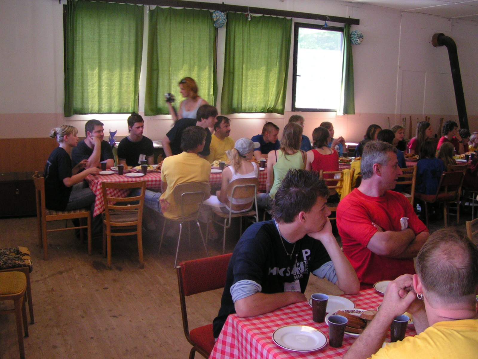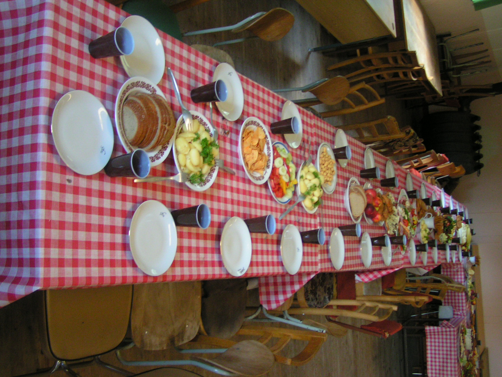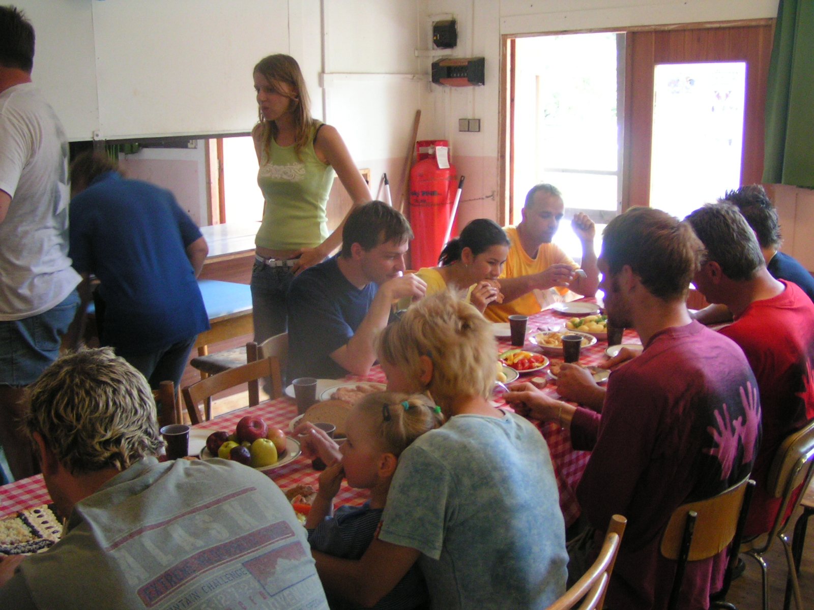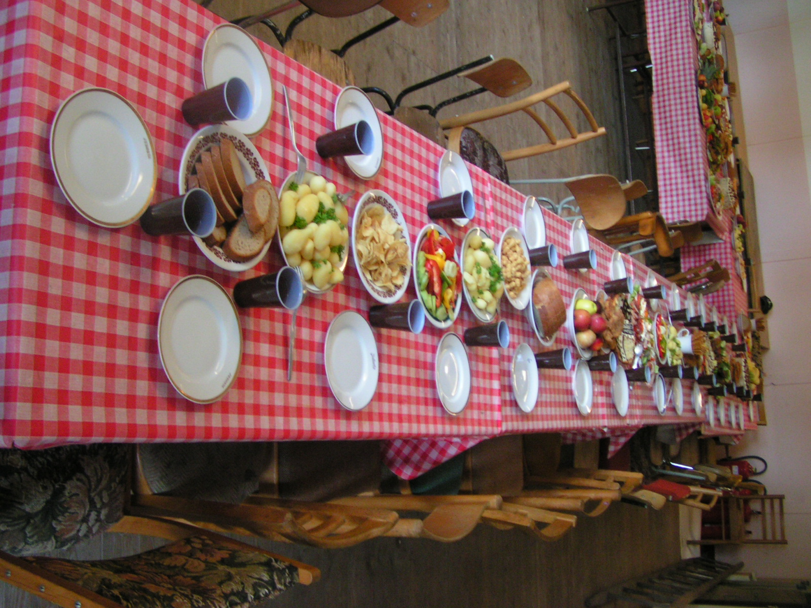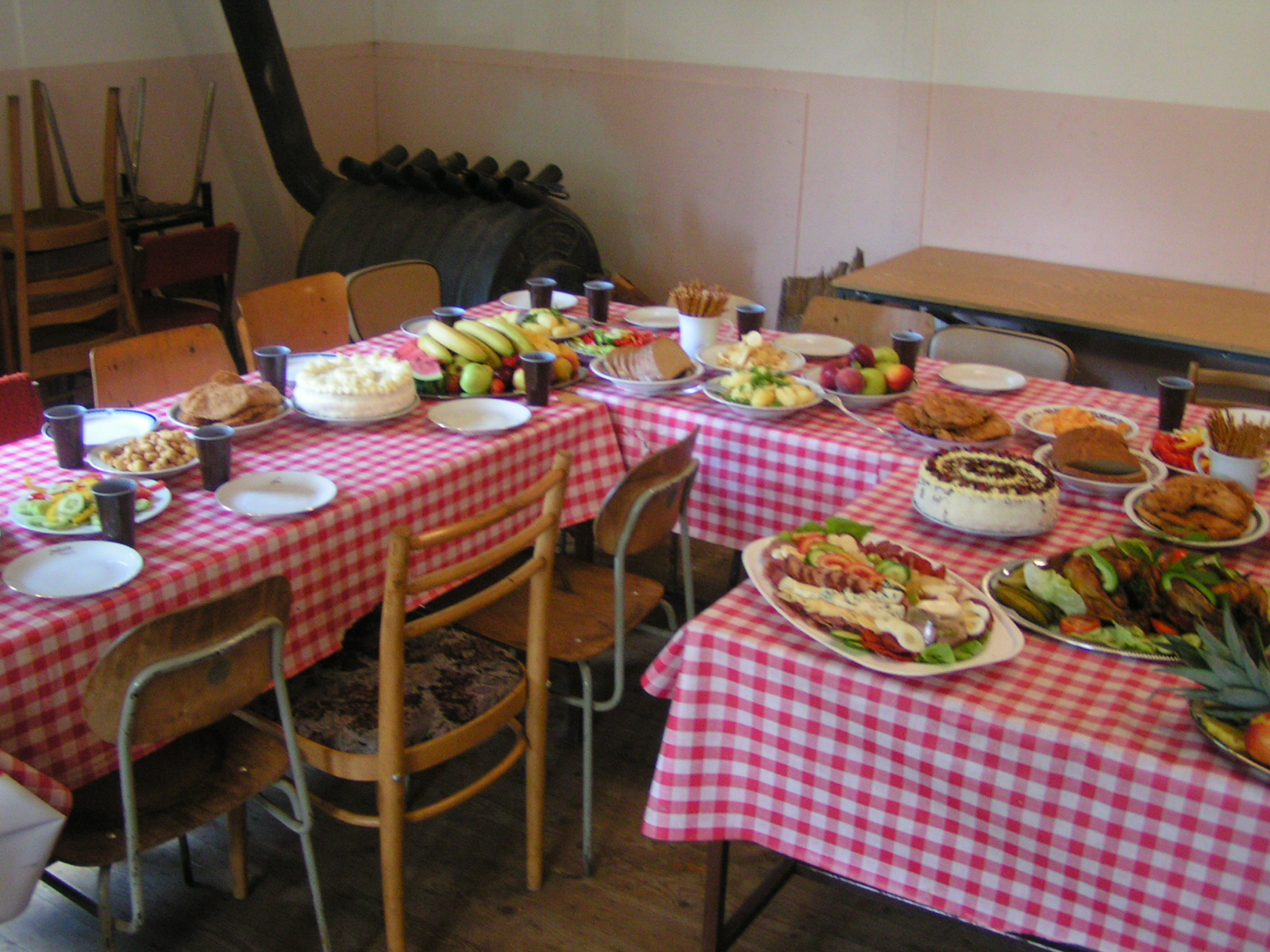 buřty, párky, klobásy - vlastní - nad ohněm rohlíky se sýrem a čajem polévka (vývar s nudlemi), guláš s knedlíkem vepřová krkovice nad plamenem, chléb buchty, chléb s paštikou a kakao královská hostina |